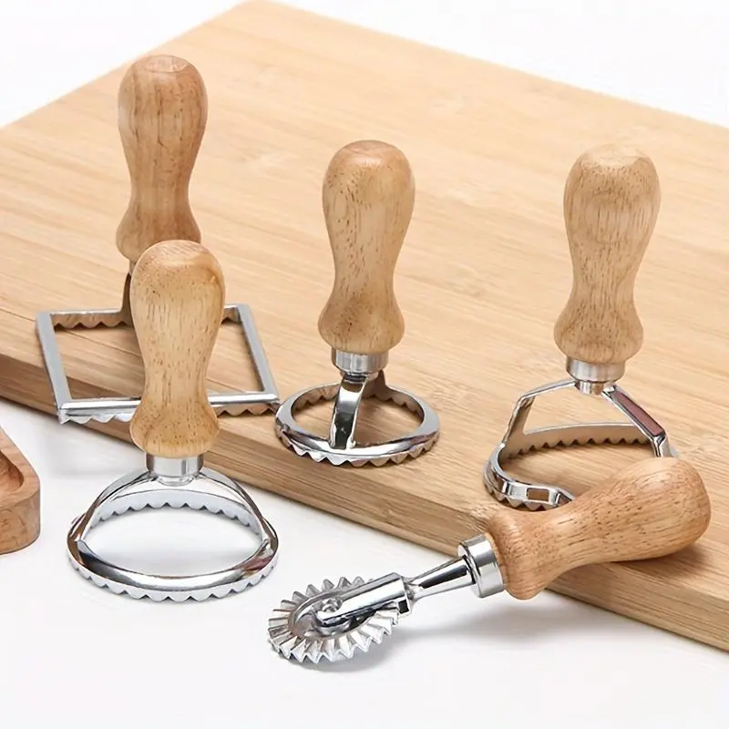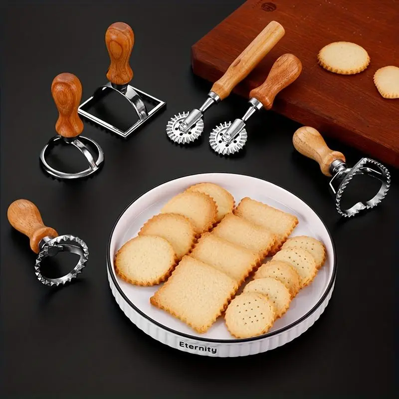1pc Cookie Cutter, Zine-alloy Biscuit Mold With Wooden Handle, Stamp Maker Cutter With Roller Wheel Set, Kitchen Gadgets, Baking Tools
