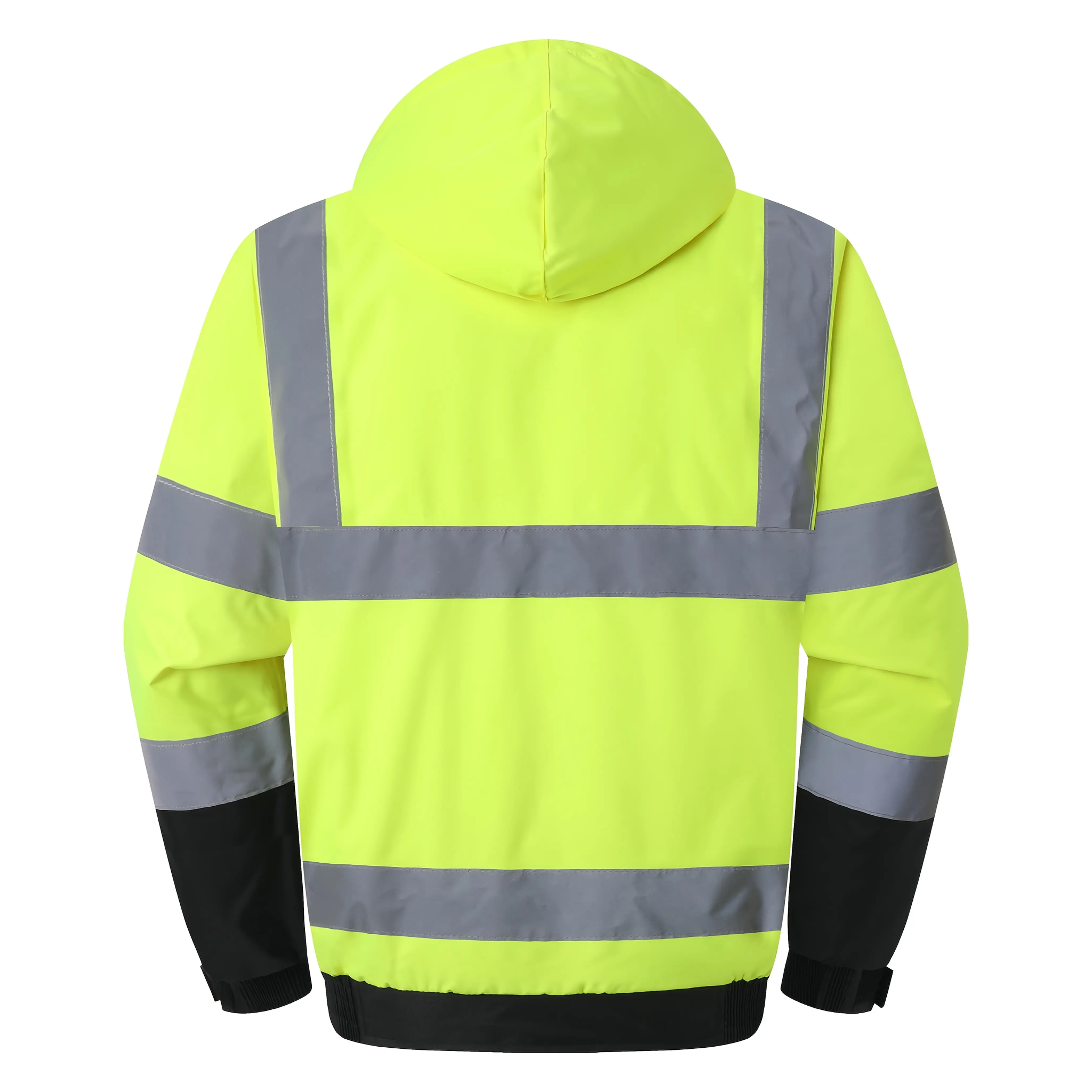 Stay safe and visible in all conditions with our high-visibility waterproof safety jacket, designed for professionals who work in low-light or hazardous environments.This hi-vis yellow coat with black bottom ensures maximum visibility day and night, featuring reflective striping that enhances your presence in dimly lit areas.Made from durable, weather-resistant fabric, it provides reliable protection against rain, wind, and cold, making it ideal for construction, roadwork, warehouse jobs, and emergency response.