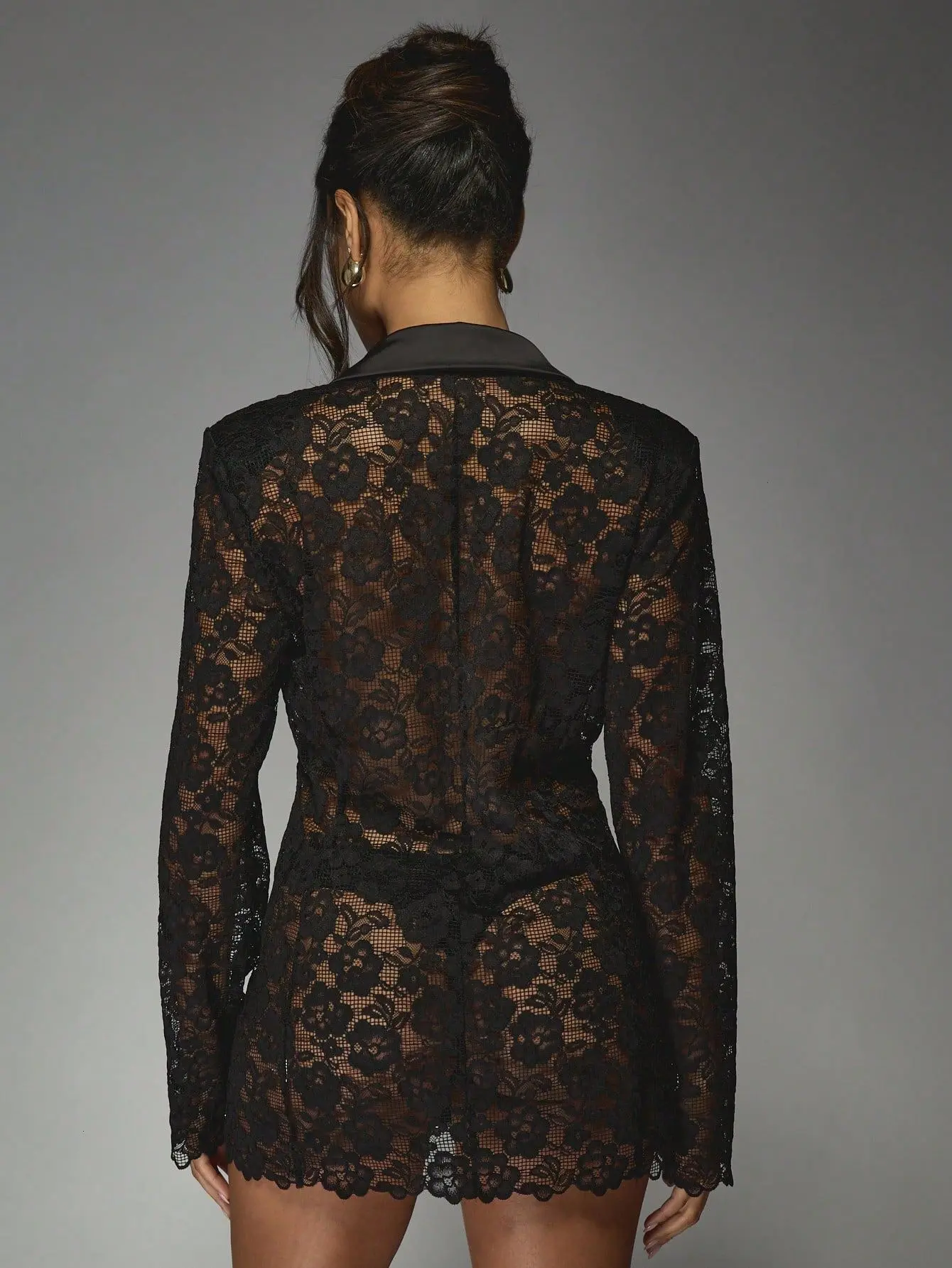 5. MISSGUIDED Double Breasted Lace Blazer Mini Dress With Scalloped Hem