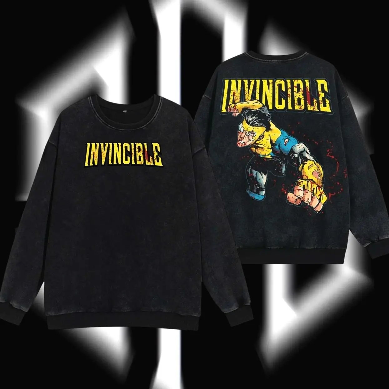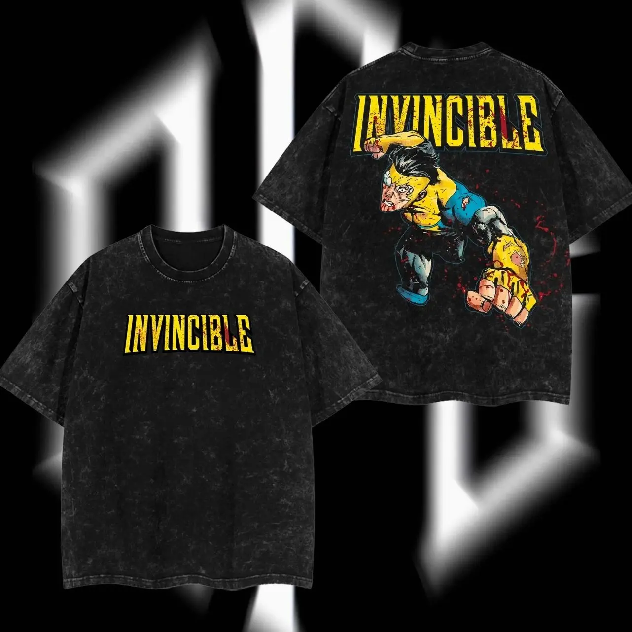 Superstyle Limited Edition Emperor Mark Grayson Invincible War Superhero Comics Edition Double Print Lightweight Acid Washed Tee Hoodie Sweater Graphic Design Top Cotton Streetwear Comic T-Shirt Clothes Menswear Womenswear RZ0