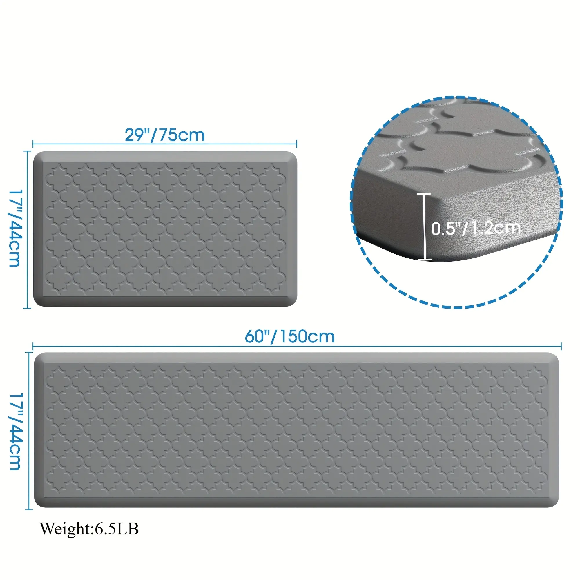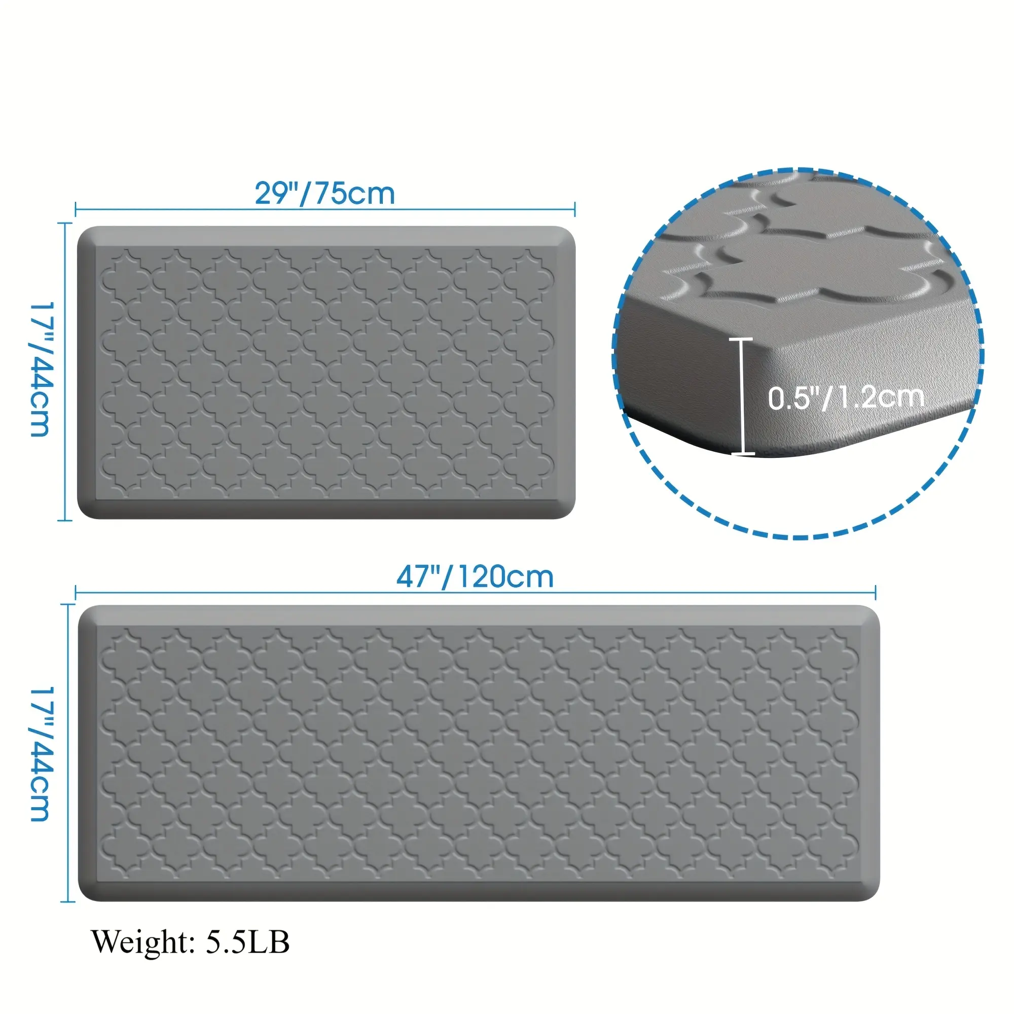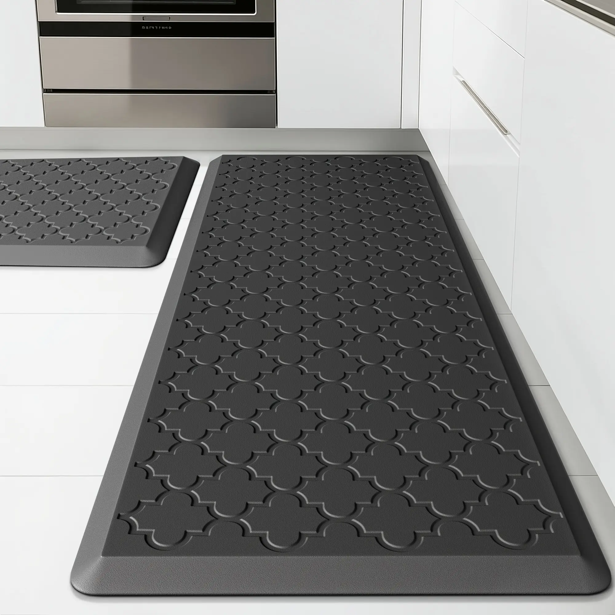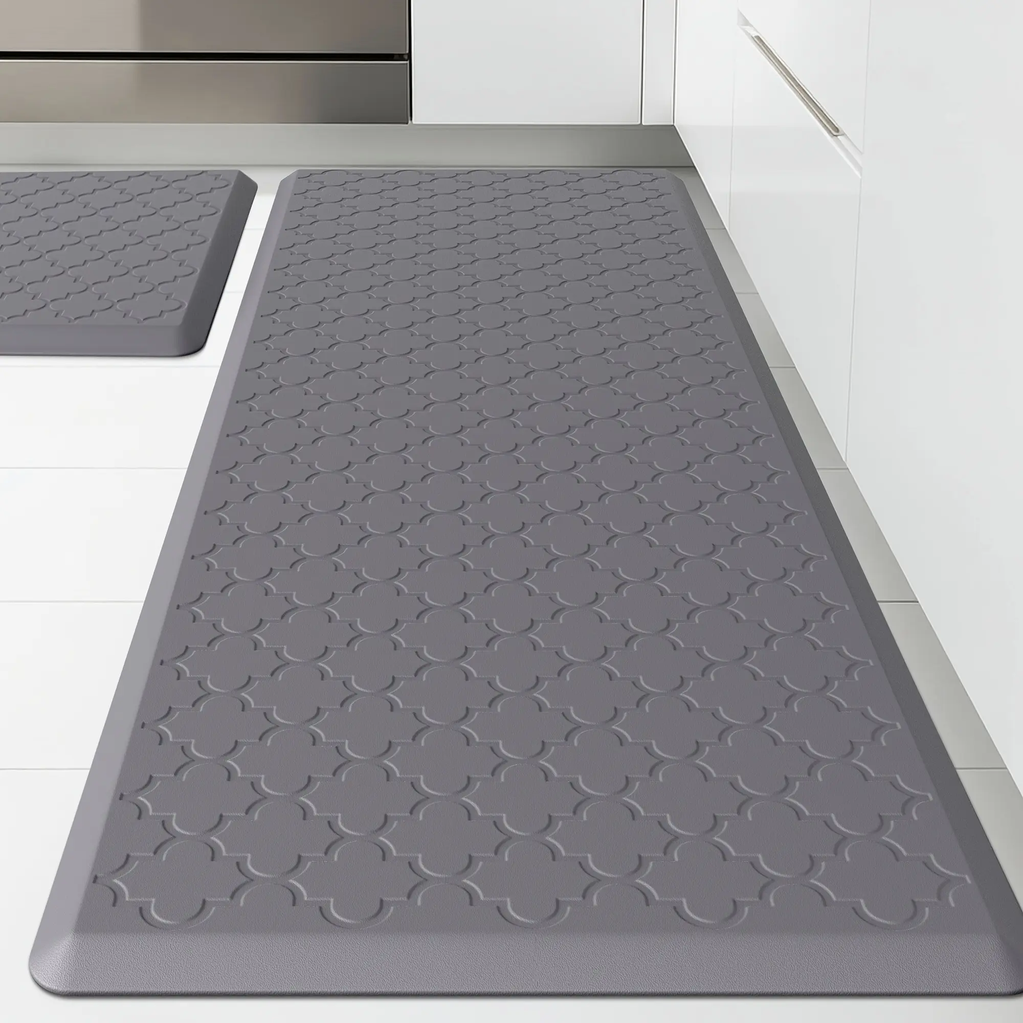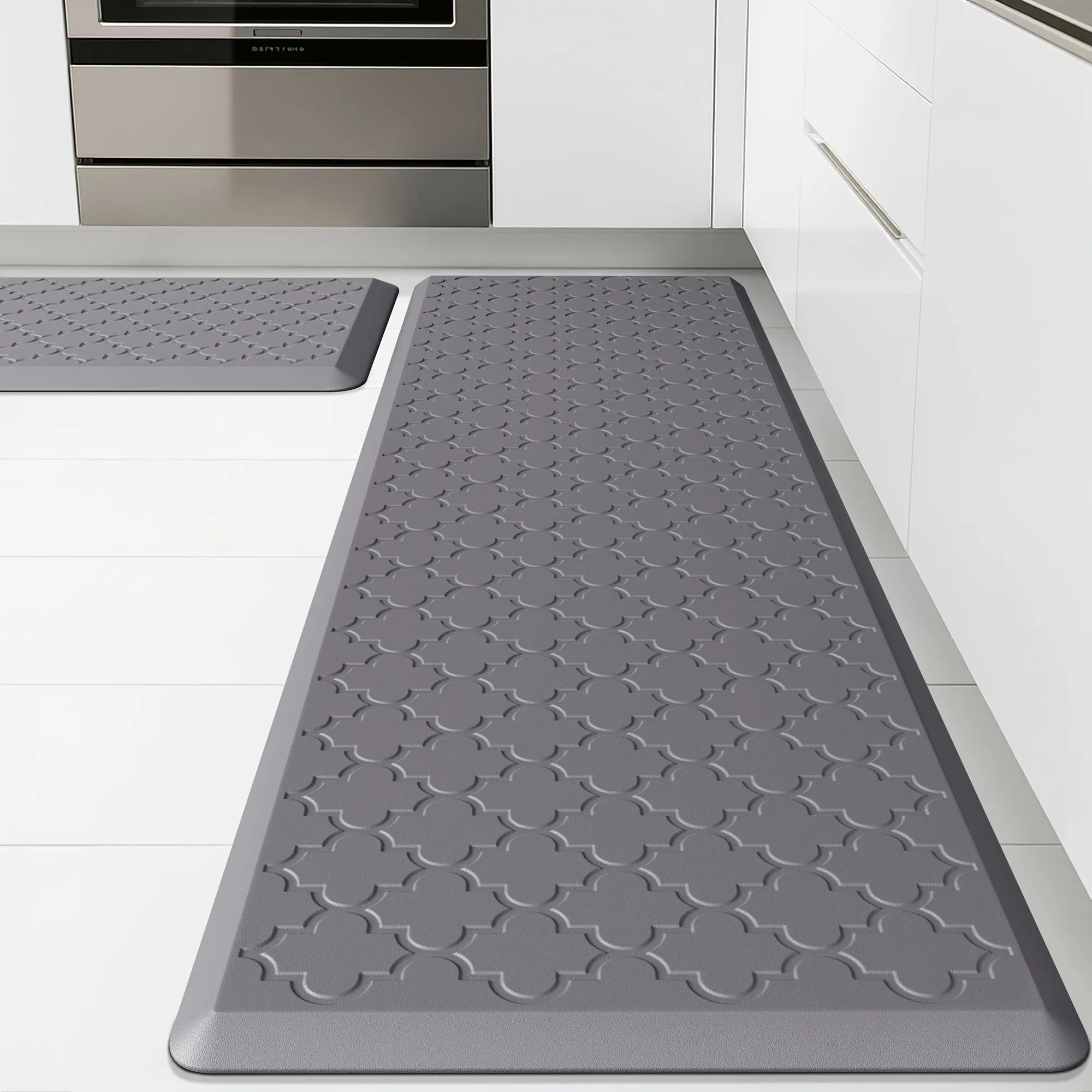 [Non-Slip Kitchen Mats] 2pcs Non-Slip Cushioned Kitchen Mats for Floor| Anti Fatigue Mats for Standing, Office, Sink, Laundry - Grey
