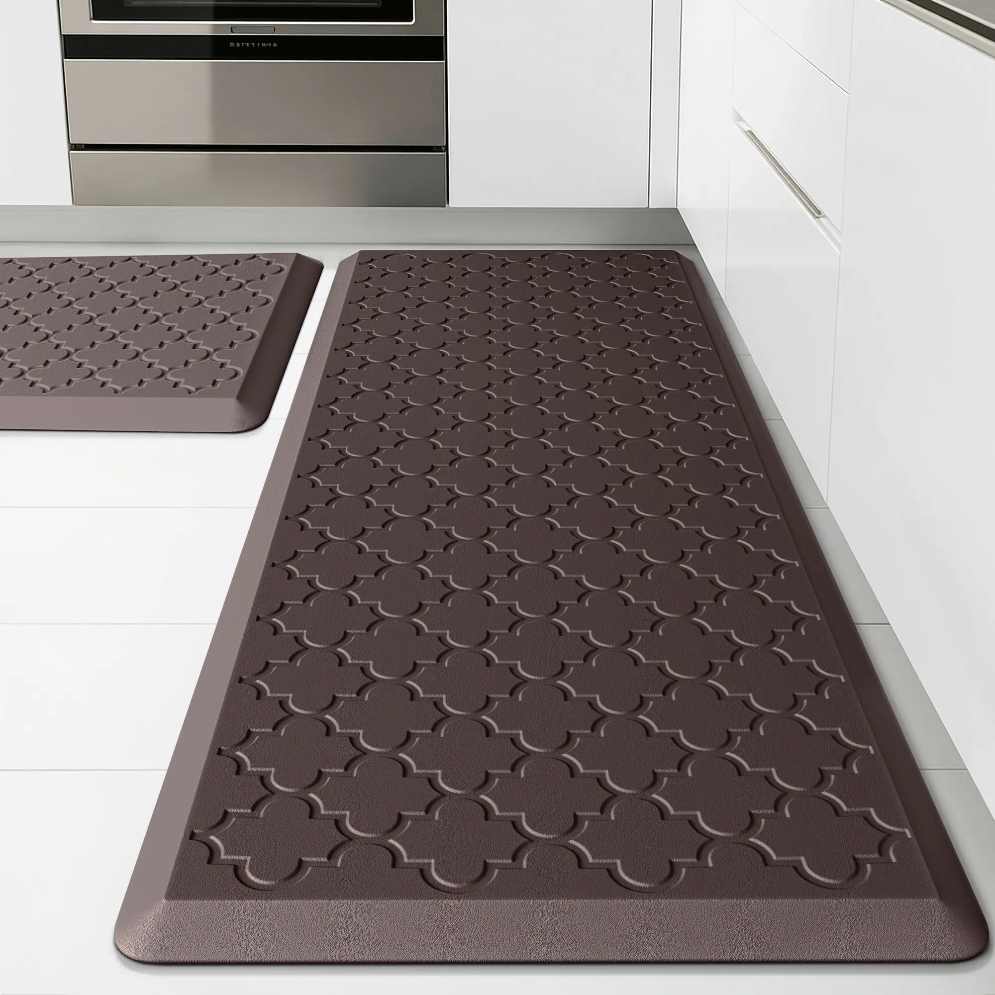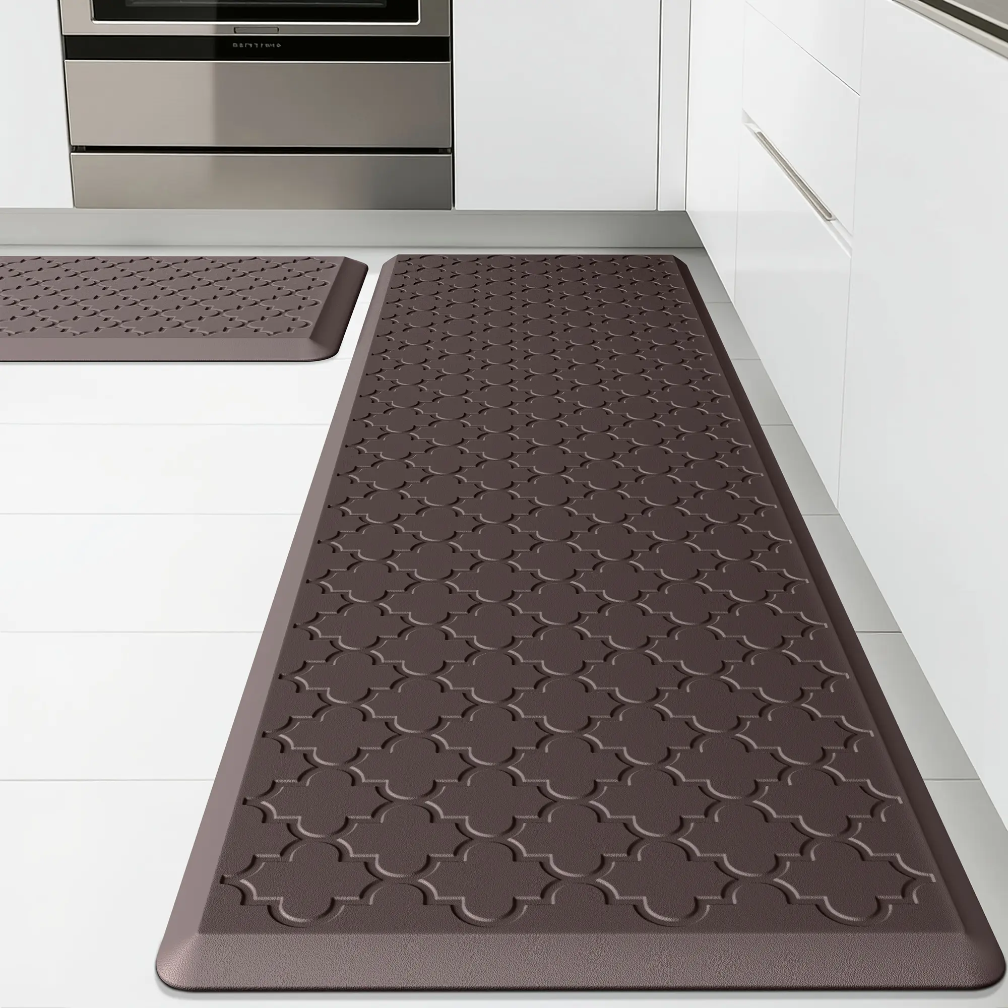 2D Flat 2pcs Brown Kitchen Absorbent Diatomaceous Earth Floor Mats, Vintage Plaid Style Long Rugs, Oil And Non-slip Backing, Fast Drying, Machine Washable, Soft And Comfortable, Suitable For Kitchen, Laundry Room, Bathroom, Hallway, Home Decor Rugs