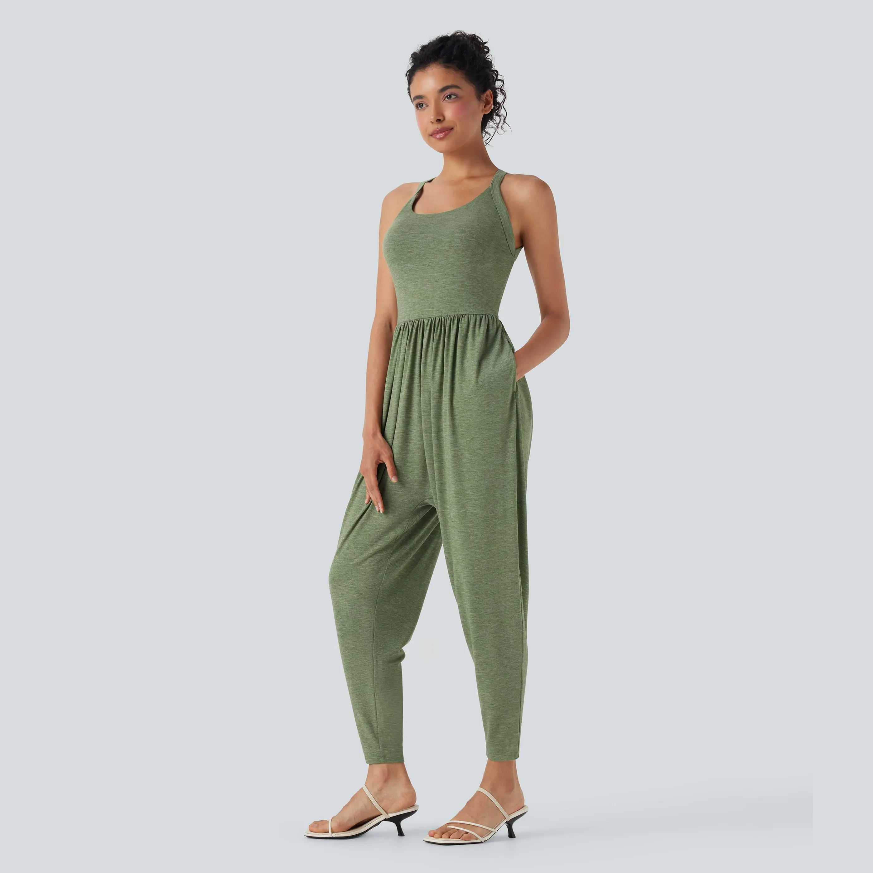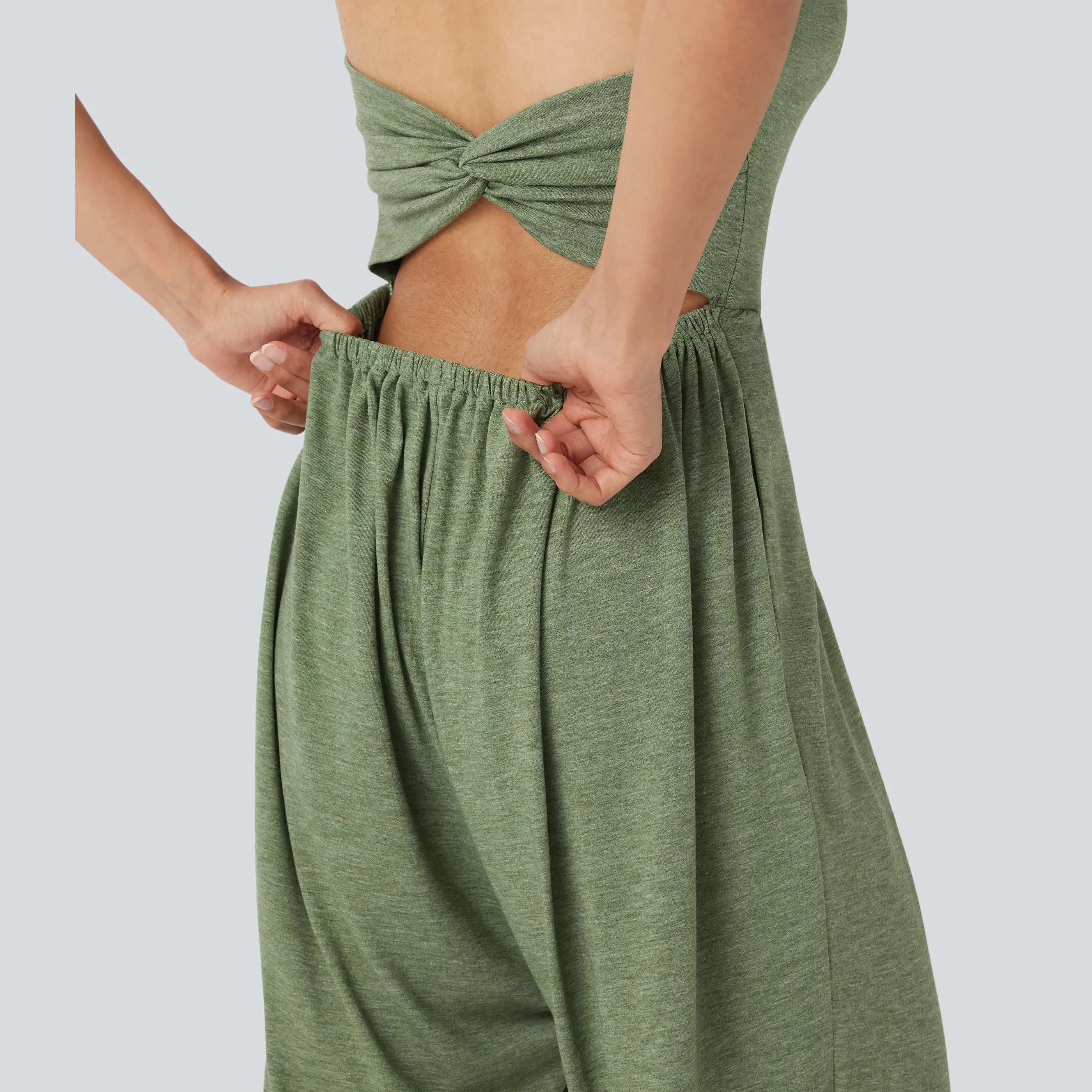 Backless Twisted U Neck Harem Casual Jumpsuit with Pockets-Easy Peezy Edition-D/DD/DDD/F Cups