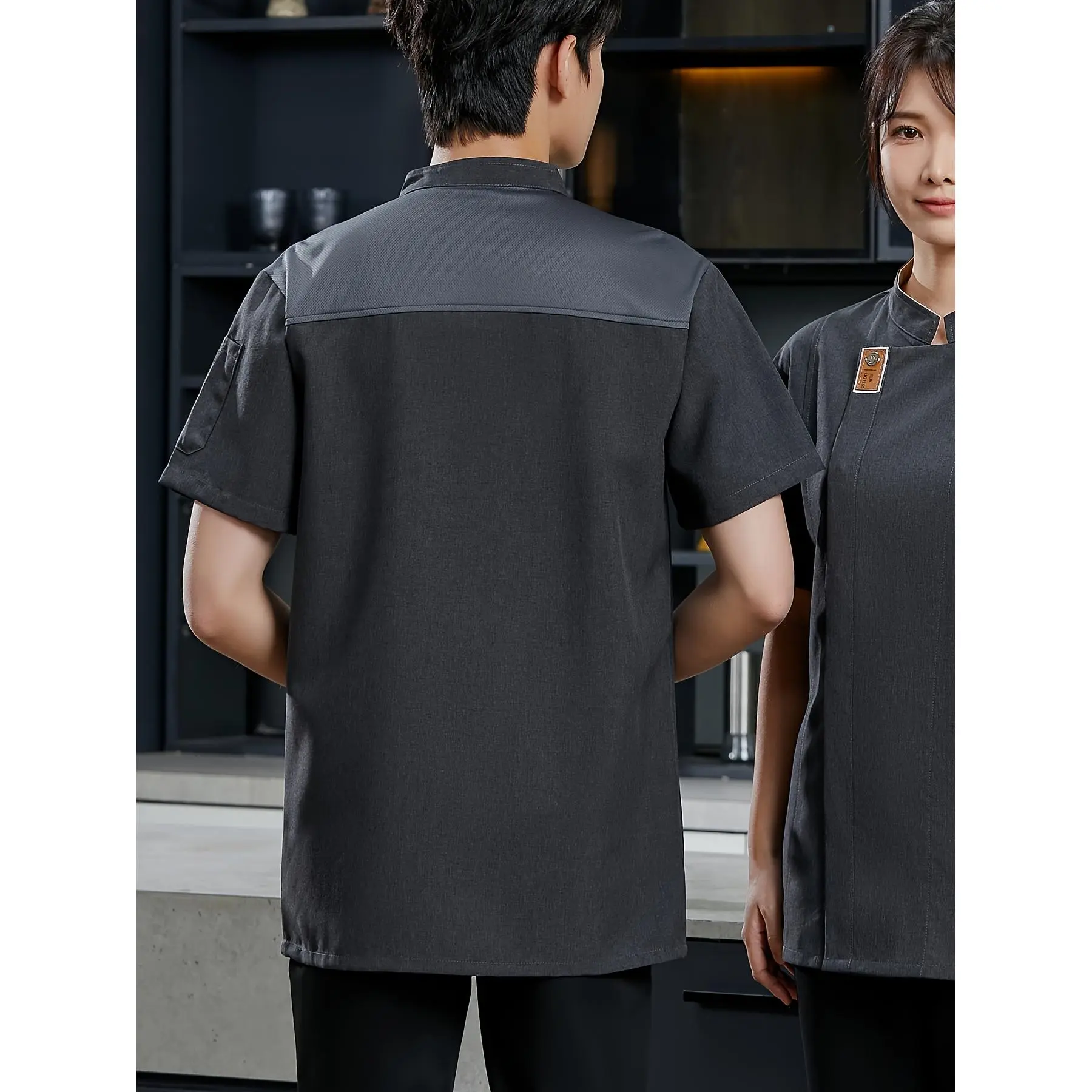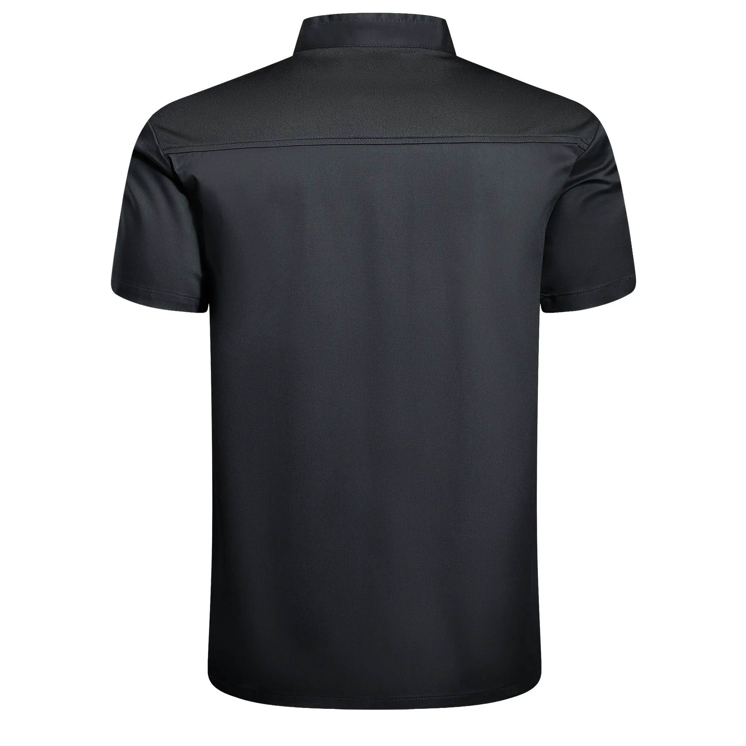 5. [Black Chef Uniform] Stylish Black Professional Chef Uniform - Short Sleeve Jacket with Pockets, Stand Collar, Polyester Fabric | Ideal for Kitchen, Baking, and Restaurant Use, School Cafeteria Clothing, Machine Washable233