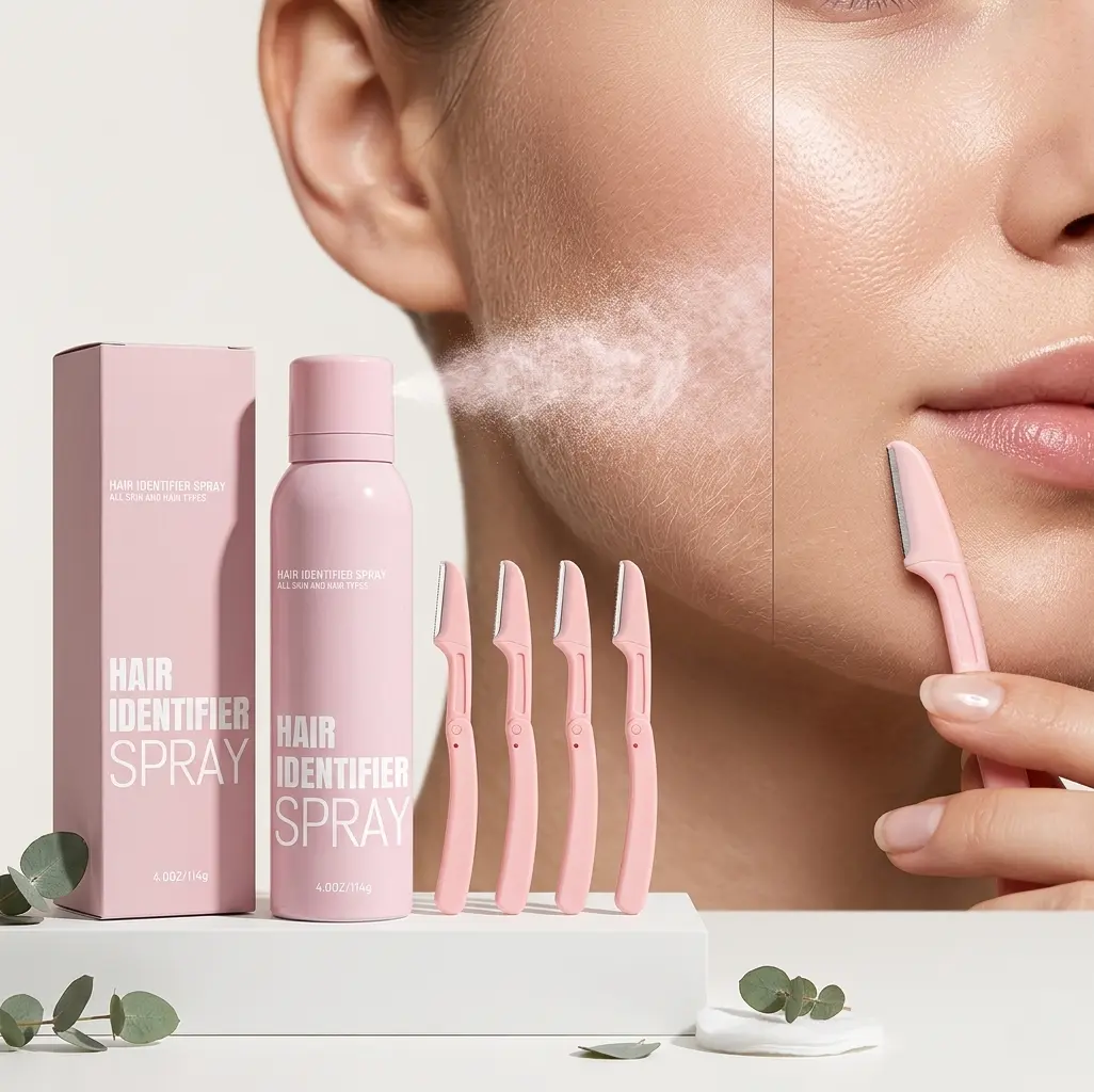 Are you missing hidden facial fuzz that makes your foundation look cakey? Our Hair Identifier Spray is the ultimate beauty hack. It coats fine, invisible "peach fuzz" in a temporary white highlight, allowing you to shave with 100% precision for a professional-grade dermaplaning result at home.
