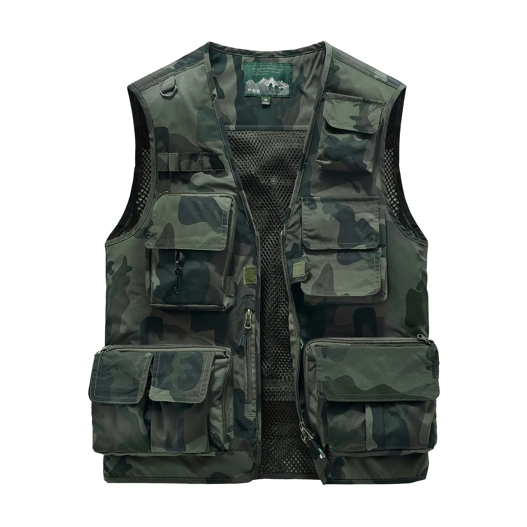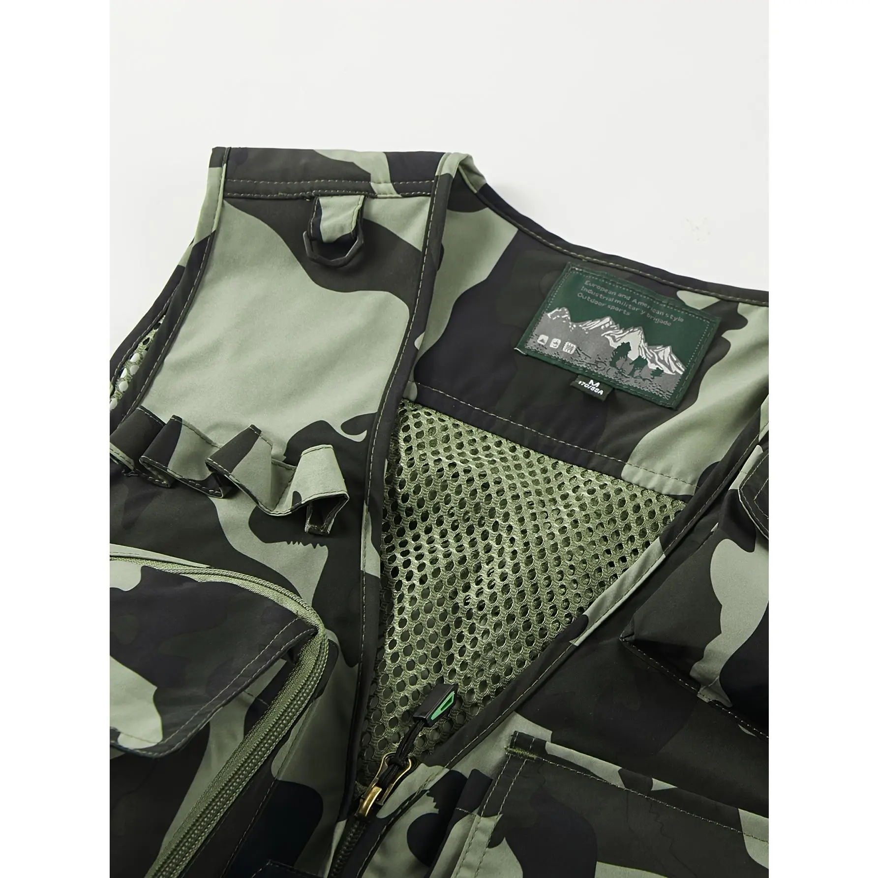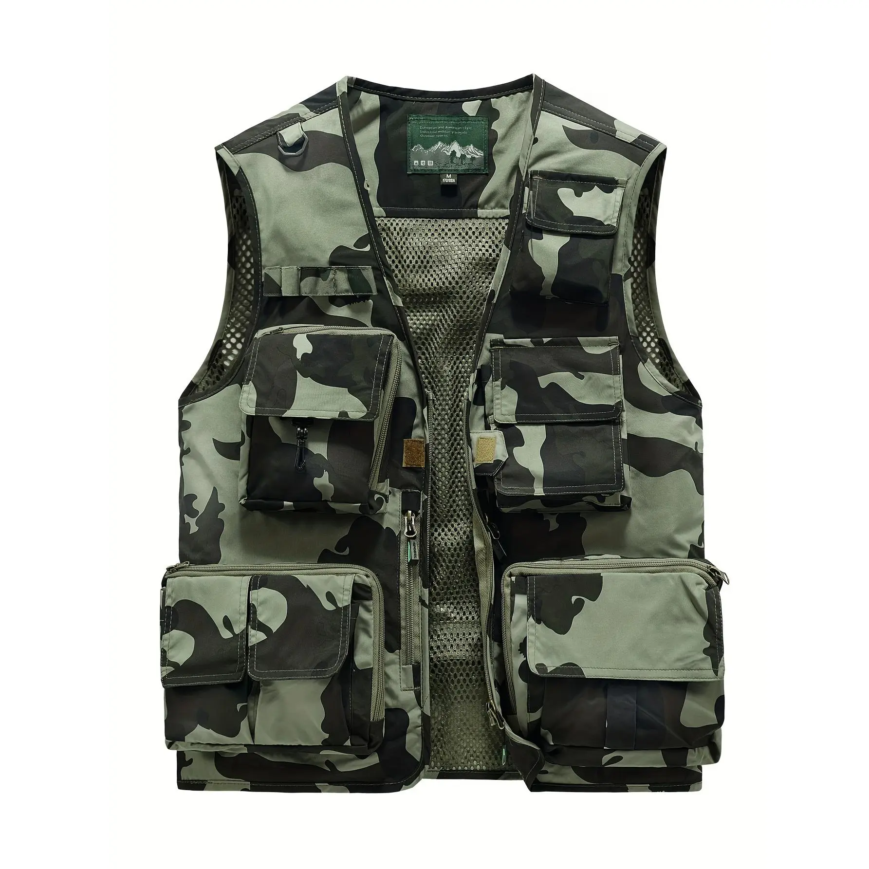 Men's Tactical Camo Vest - Sleeveless Outdoor Utility Vest with Multiple Pockets, Zippered Mesh Panels & Straps for Hiking, Fishing & Casual Wear, Fishing Vest|   Camouflage Vest|   Multipocket Vest