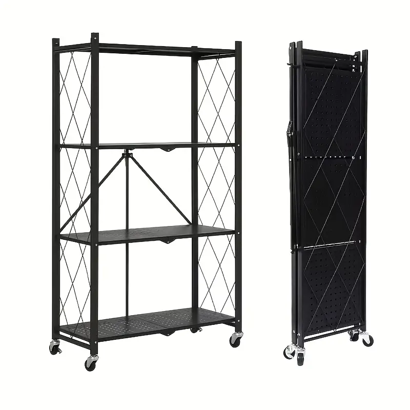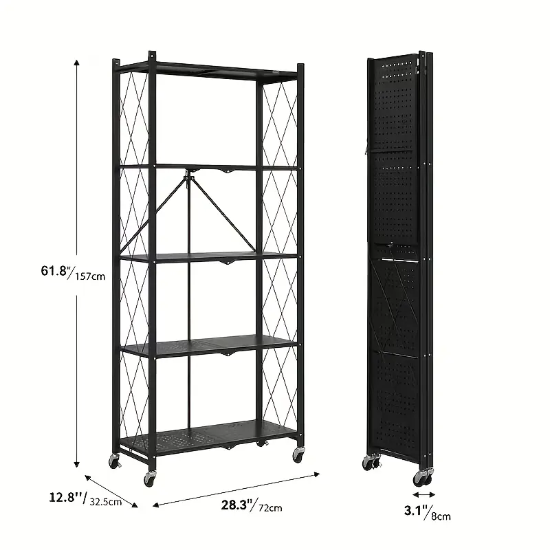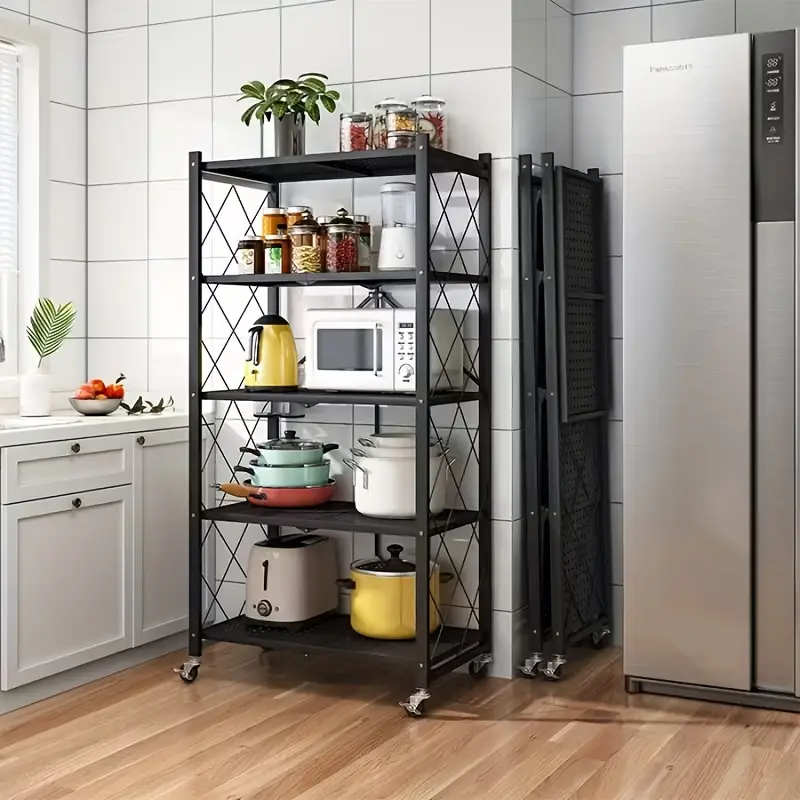 3/4/5 Layer Folding Storage Rack, No Installation, with Wheels, Can Move Freely, Suitable for Living Rooms, Kitchens, Garages, Study Rooms, Basement Storage Rooms, Practical Shelves, Multi-Tier Office Storage Rack Standing Shelf, Standing Shelf