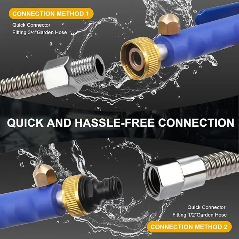 High Pressure Jet Hose Nozzle, Power Washer Wand with 2 Nozzles, Leak-Proof for Car Wash, Gutter, Pets & Window Cleaning