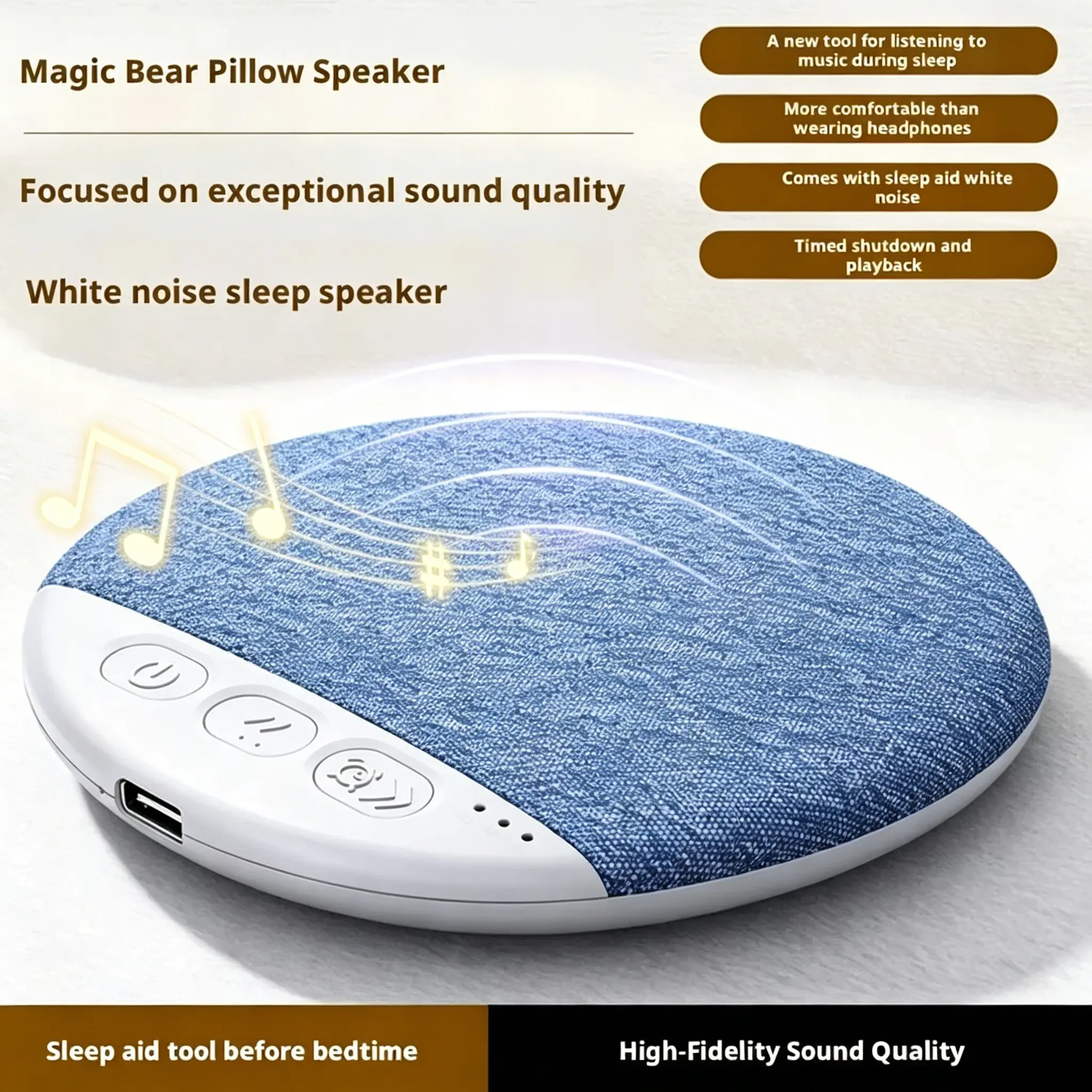 Under Pillow Speaker for Sleeping – Mini Bone Conduction Bluetooth Sleep Aid with Stereo Bass, White Noise, Volume Control, TF Card Support, and Auto-Off Function for Deep Sleep– Charger Not Supplied Smartphone