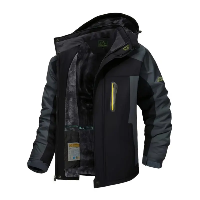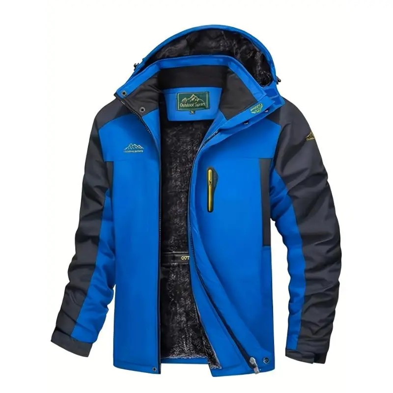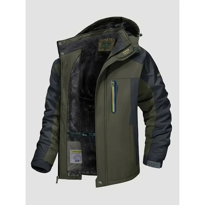 [1 Men'S Winter Sports Jacket] Men'S Winter Sports Jacket with Detachable Hood, Windproof, Warm Long-Sleeve Coat, Breathable, Waterproof, Durable, Polyester Fabric, Regular Fit, with Pockets, for Cold Weather, Skiing, Hiking, Clim