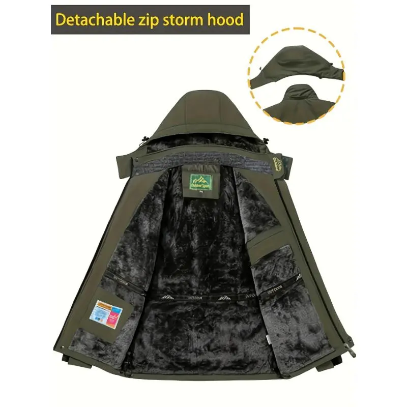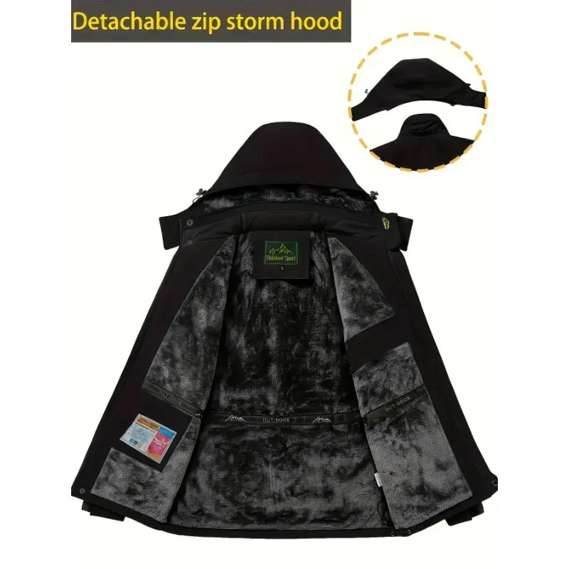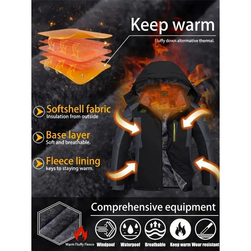 5. [1 Men'S Winter Sports Jacket] Men'S Winter Sports Jacket with Detachable Hood, Windproof, Warm Long-Sleeve Coat, Breathable, Waterproof, Durable, Polyester Fabric, Regular Fit, with Pockets, for Cold Weather, Skiing, Hiking, Clim