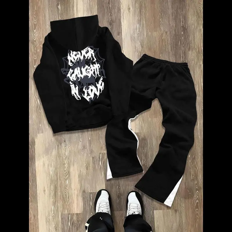 5. Men's Spider Web Print Hoodie & Drawstring Waist Sweatpants Set, Regular Fit Casual Fashion Long Sleeve Hooded Sweatshirt & Pocket Flare Leg Pants for Daily Wear, Fashionable Men Streetwear Outfits for All Seasons, Men's 2 Piece Set