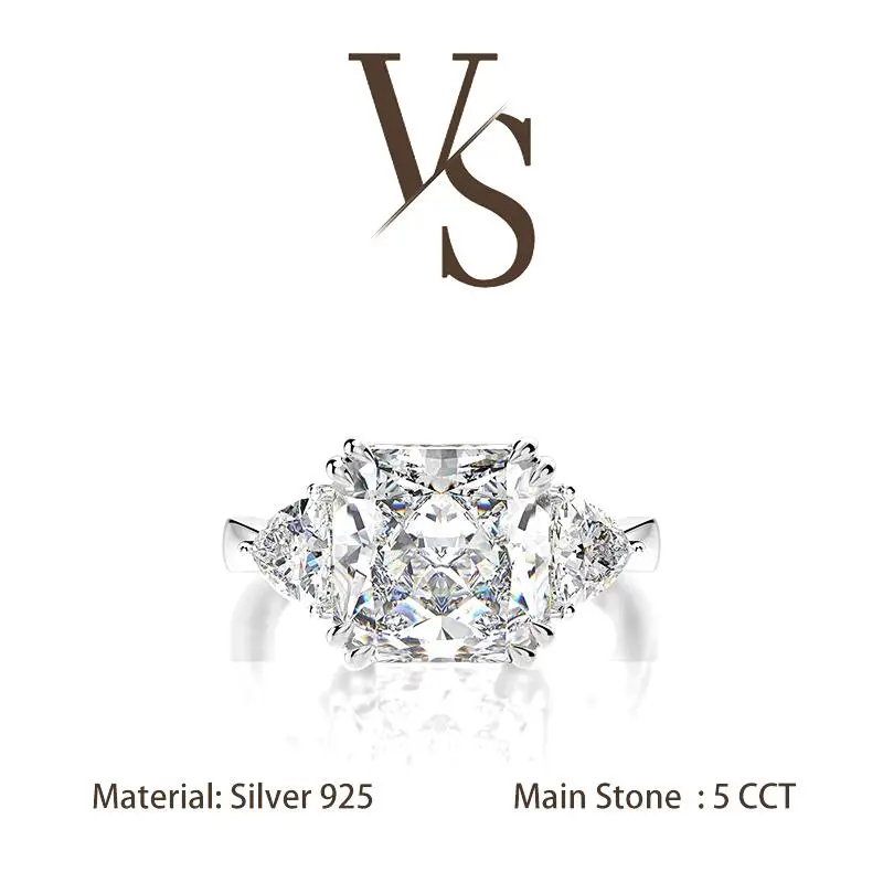 [Venus Jewelry] Lab Created Gemstone 5 CCT Square ShapeTriple Stone Design Solid Silver 925 Solitare Ring