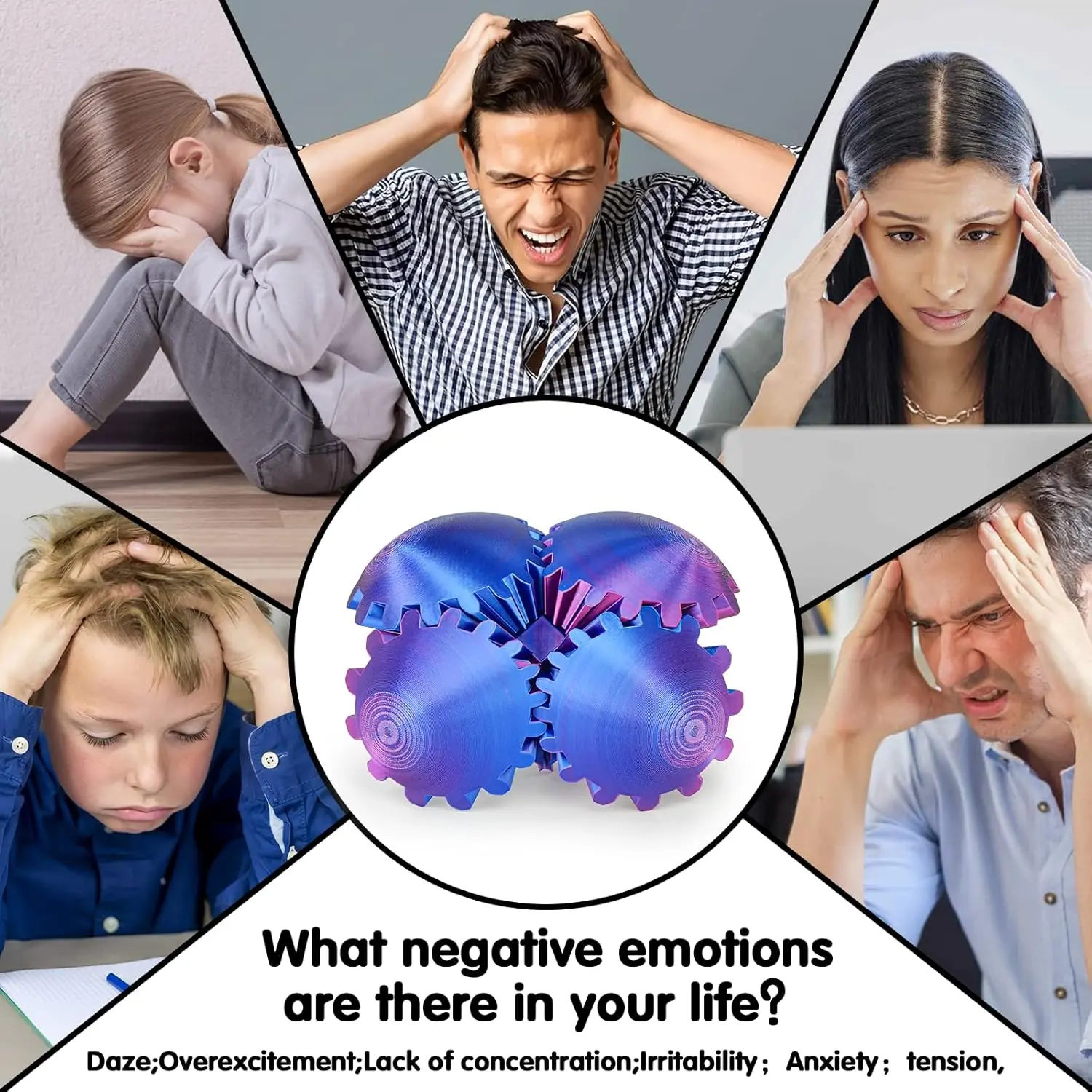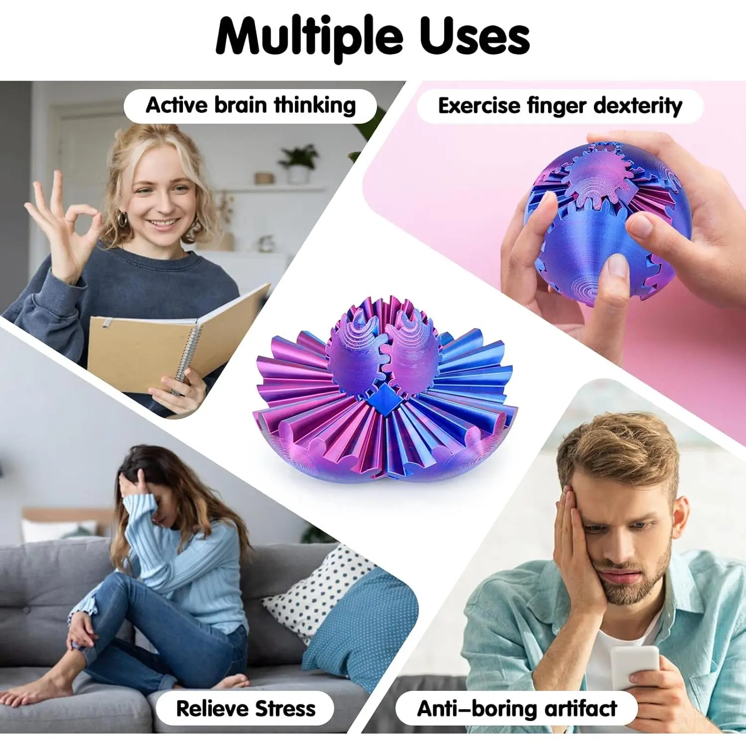 Gear Ball 3D Printed Cube Fidget Toy,Gear Sphere Fidget Toys,Sensory Toys for Stress and Anxiety Relief, Desk Toy Fidget Spinners,Stocking Stuffers for Adults & Kids Gift(Purple Blue, 3.1 Inch)