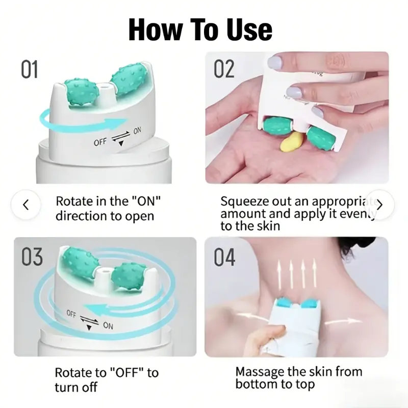 Built-in dual roller applicator, no extra tools needed! Just roll directly on skin for a professional massage experience, helping the cream penetrate deeply and boost absorption.