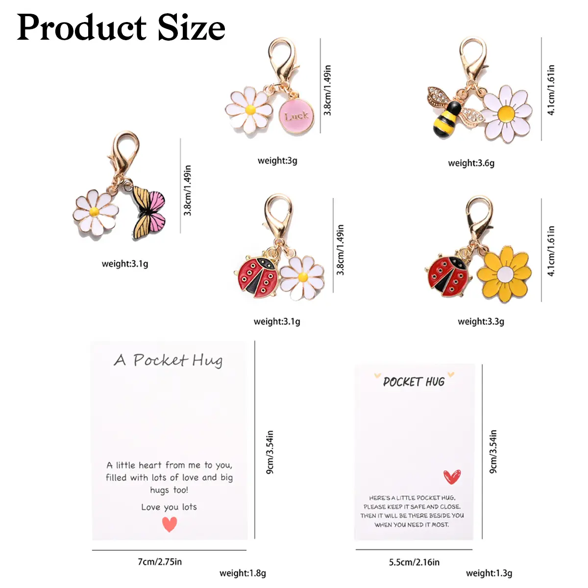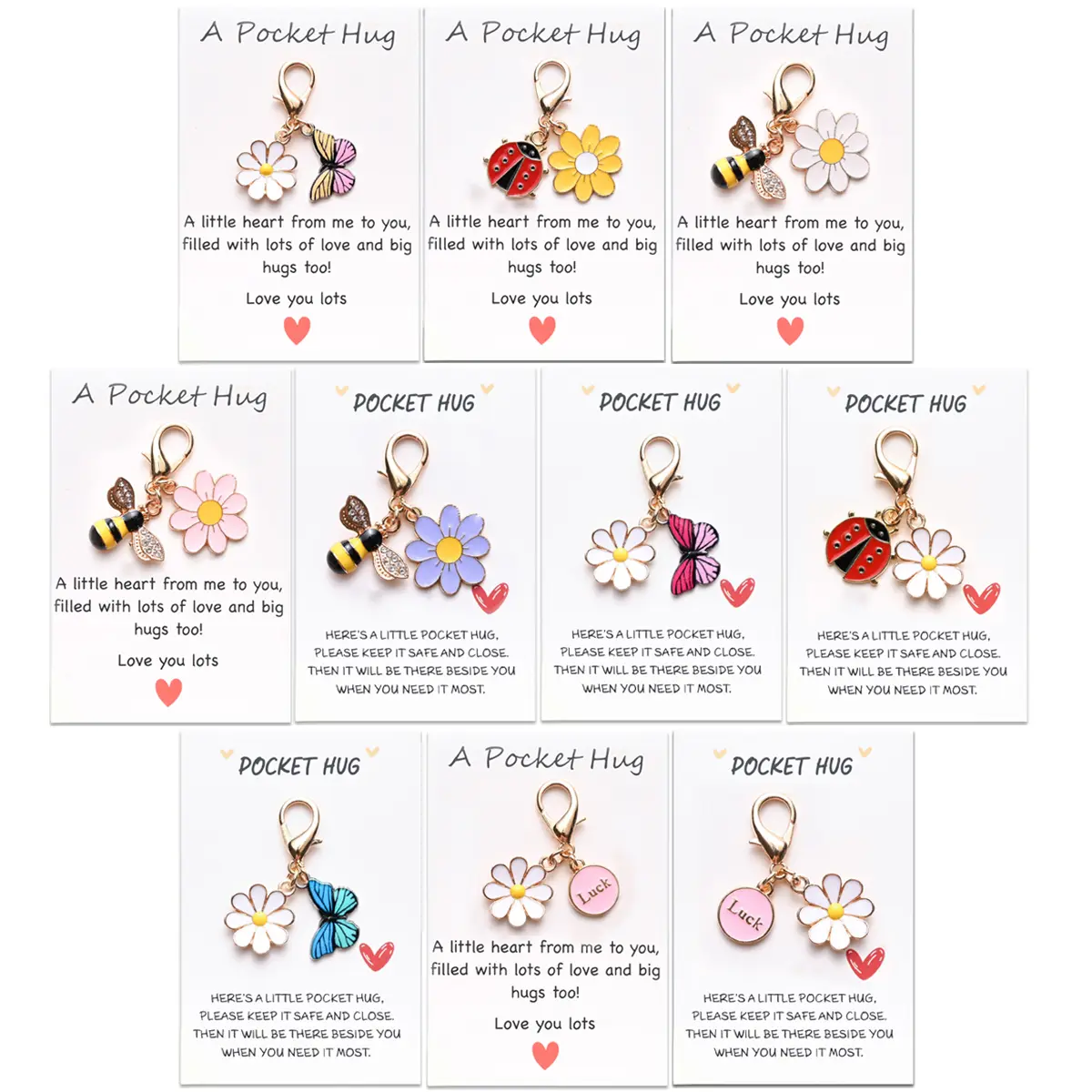10PCS Pocket Hug Keychain Gift Set with Inspirational Cards – Cute Daisy Bee Butterfly Ladybug Encouragement Gifts for Friends, Family, Kids, Emotional Support Keepsake