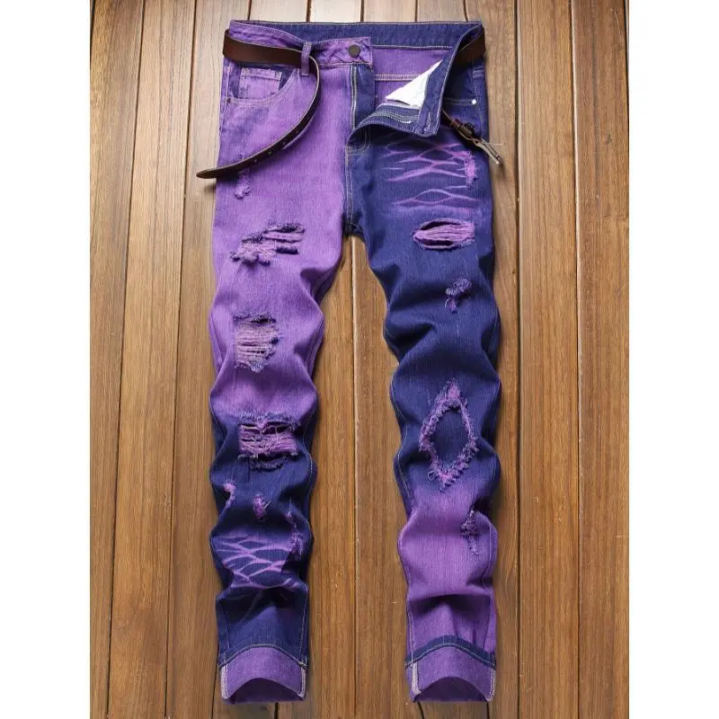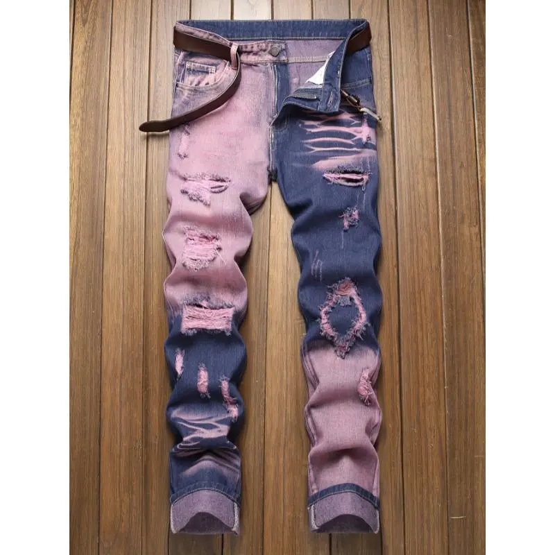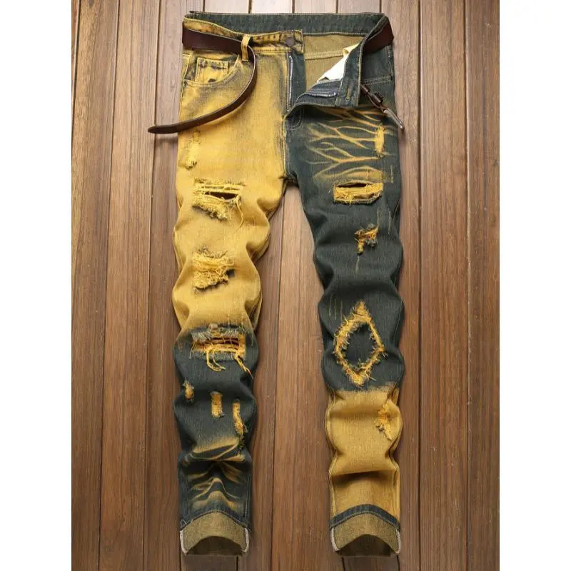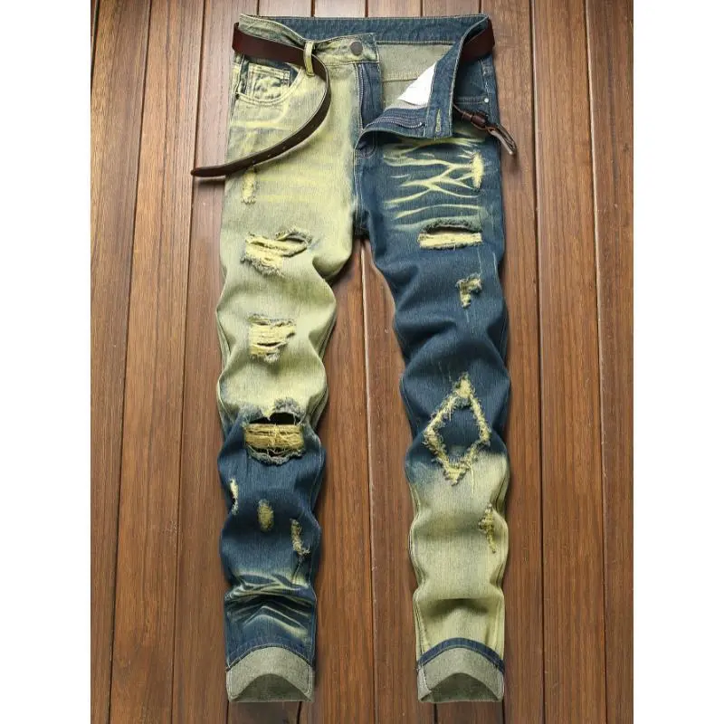 Slim Fit Ripped Jeans, New Year physical exercise Men's Casual Street Style Distressed Jeans men  jeans