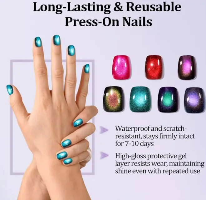 ·Multi-Scenario Application: Full coverage cat eye manicure set contains 7 fashionable styles, suitable for a variety of social occasions, daily commuting, party gatherings, weddings and festivals, DIY home manicure is suitable, but also very suitable for a variety of short-term activities, such as travel or vacation, a box to meet the needs of the four seasons of the hundred variations of the modeling, the short-square design to fit the nail shape, natural and comfortable, work and play both.
