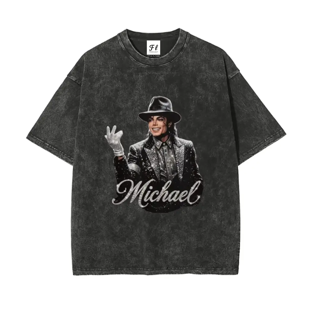 This t-shirt is a tribute to the legendary Michael Jackson, known as the King of Pop. It's a washable direct spray t-shirt, perfect for fans. The 260g heavy cotton material ensures durability and comfort. Ideal for unisex wear, it fits seamlessly into any hip hop or streetwear collection.