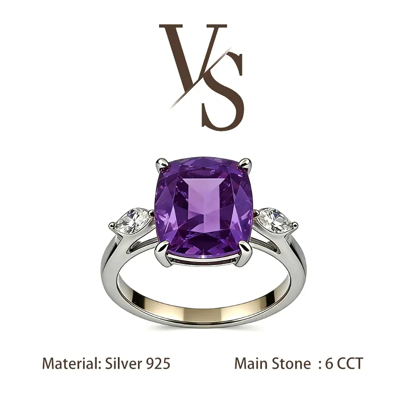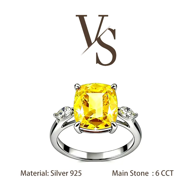 [Venus Jewelry] Lab Created Gemstone 6 CCT Elongated Cushion Triple Stone Design Solid Silver 925 Ring