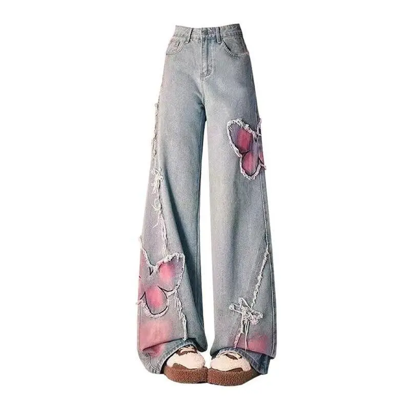 Popular American Tie-dye Butterfly Embroidered Flared Jeans for Women