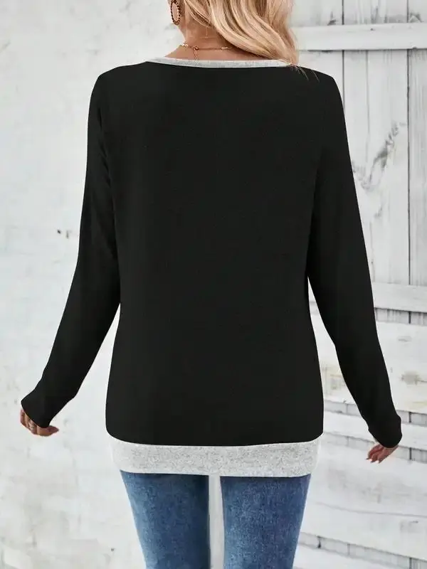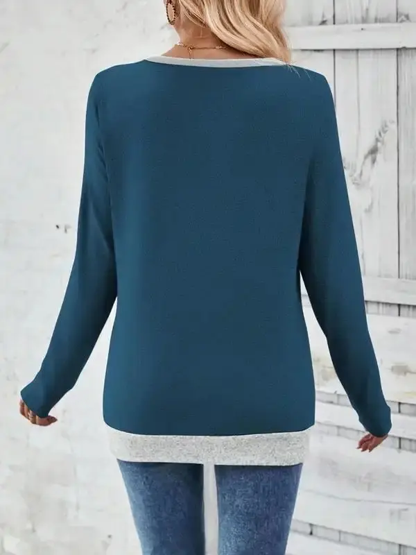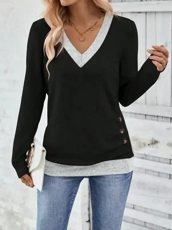 Contrast V Neck Long Sleeve T Shirt