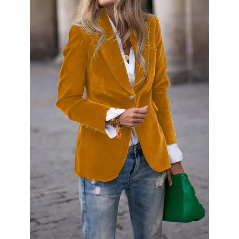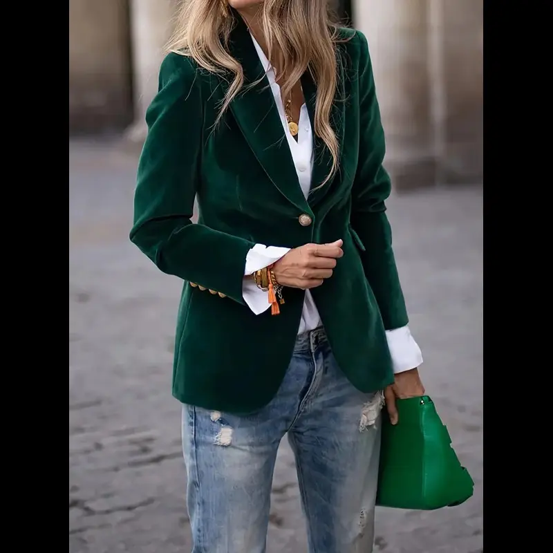 [Quickdelivey]ElegantWomen'sGreenBlazer-ChicRetroSingle-BreastedJacketwithGoldenButtons,andStretchyPolyesterBlendforSeasons,VersatileWomen'sBlazer|RetroChicJacket|StretchyCoatsSpandexFabricWomenswearTops Suits Long Sleeve