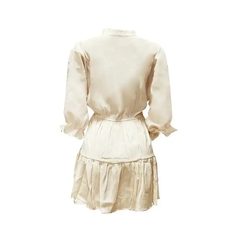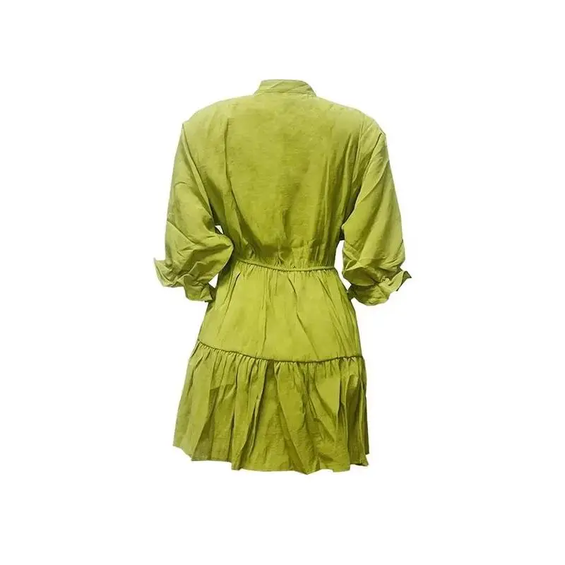 5. Women's Casual V Neck Loose Waist Pleated Dress, Short Sleeve Summer Fashion, Fitted Style, Moderate Fabric Thickness233