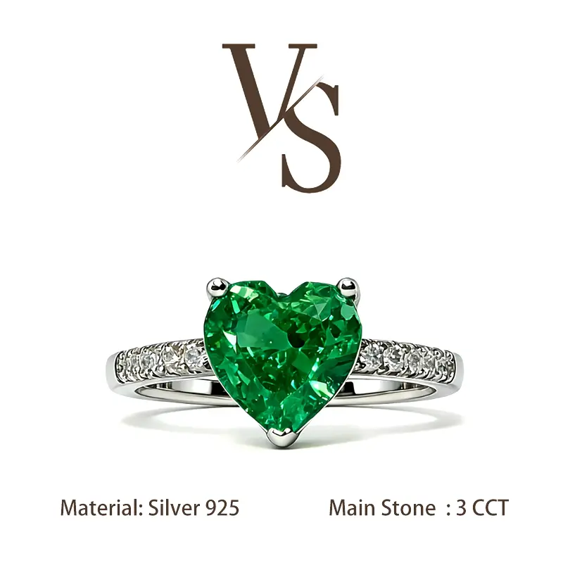 [Venus Jewelry] Lab Created Gemstone 3 CCT Heart Shape Diamond Band Design Solid Silver 925 Ring