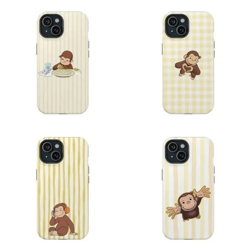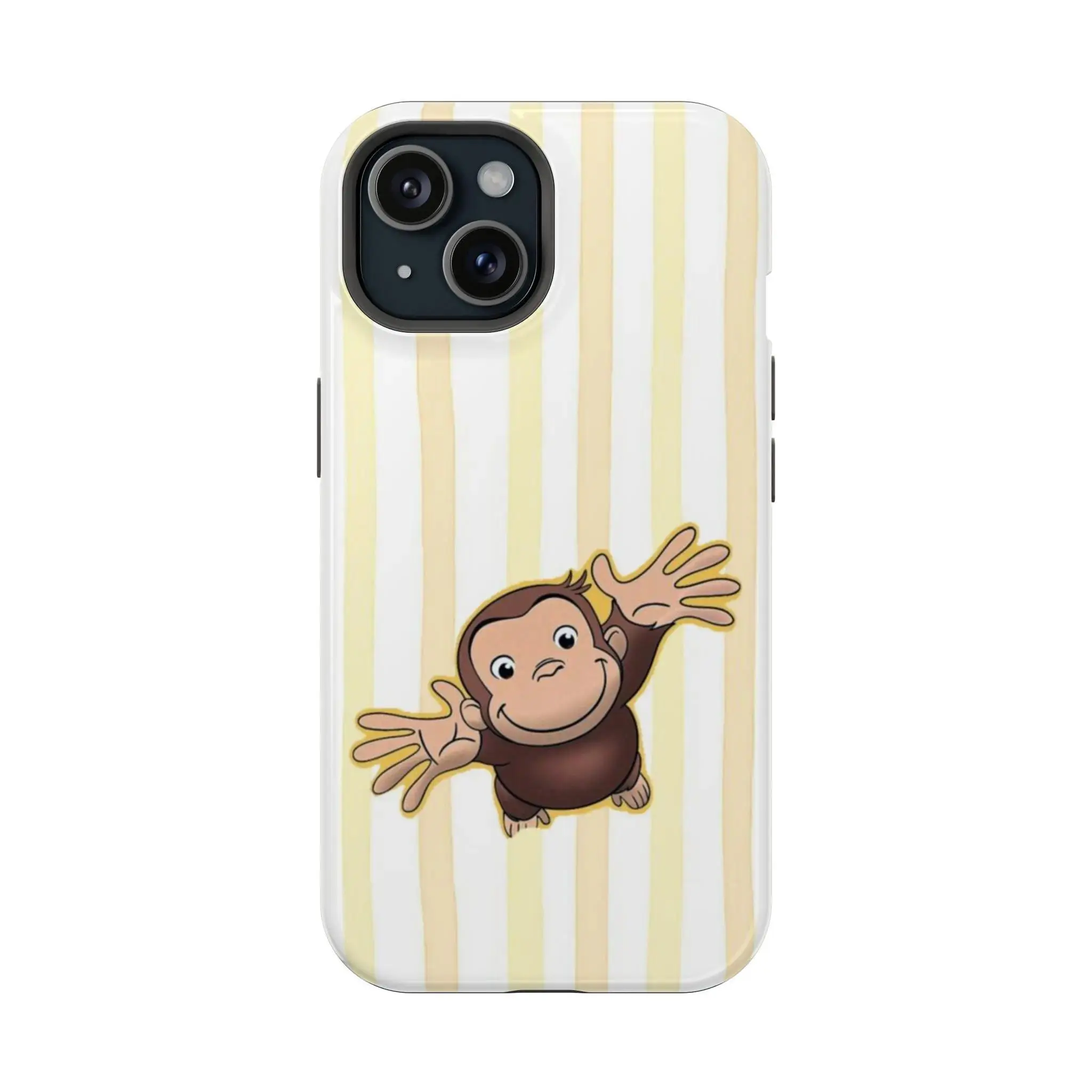 Yellow Striped Curious Monkey Cartoon Phone Case – Cute Protective Cover for IPhone & Samsung, Fun Gift for Curious George Fans,phone Case Suitable for Iphone 11/12/13/14/15/16/17 Pro Promax Plus Air and Samsung S22/S23/S24/S25 Plus Ultra Fe