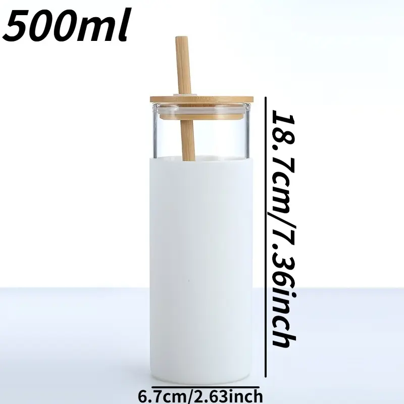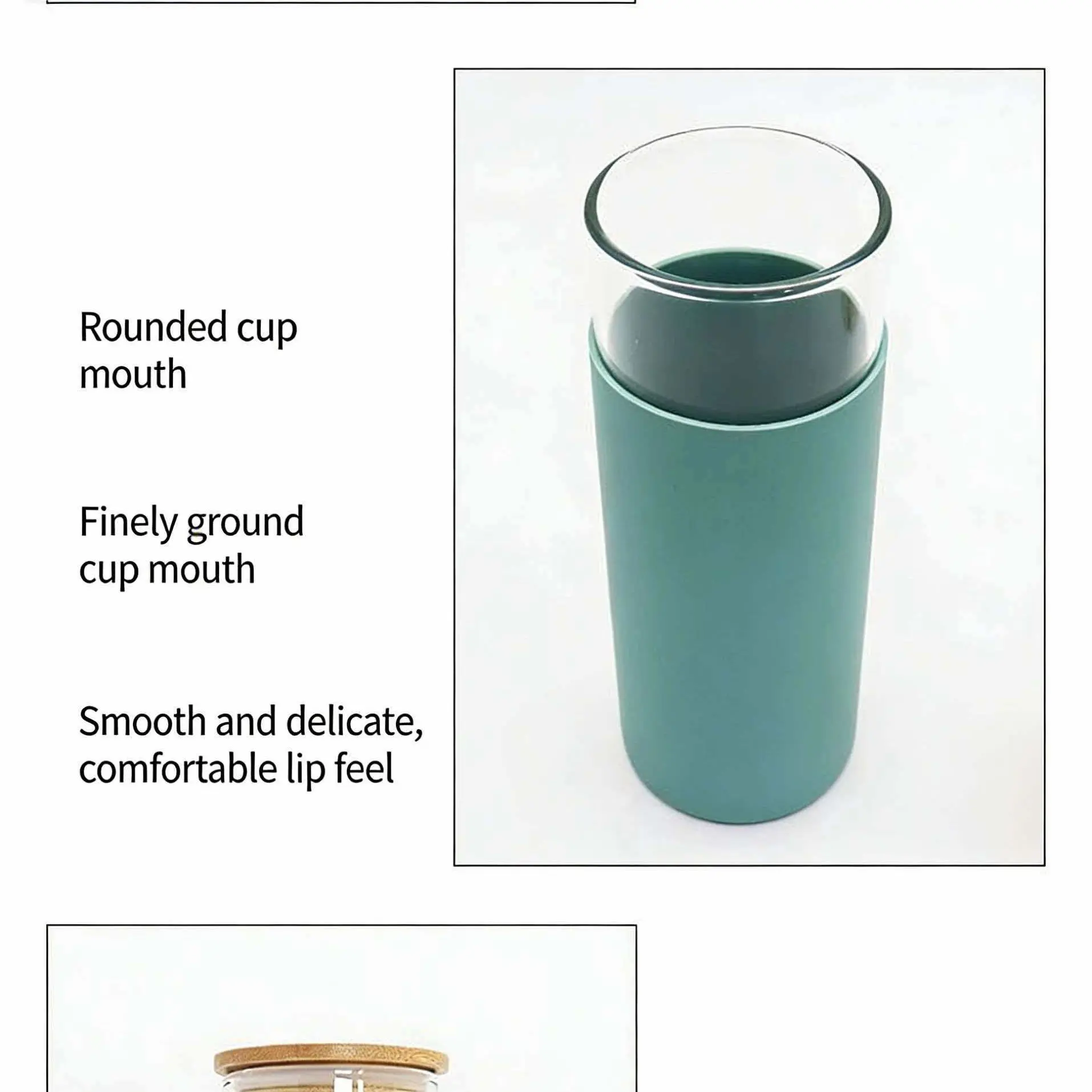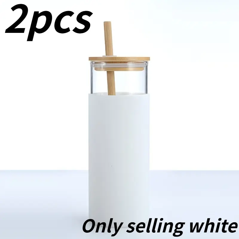 2pcs Bamboo Wood Straw Cup with Bamboo Lid Silicone Sleeve, Insulated Glass Cup, Simple High-Temperature Resistant Water Cup