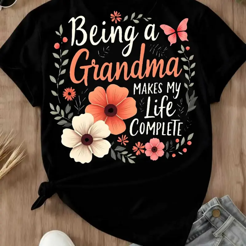 Floral Grandma Quote Design T Shirt Crew Neck Casual Tee For Women Mother Day Gift Grandmother Outfit