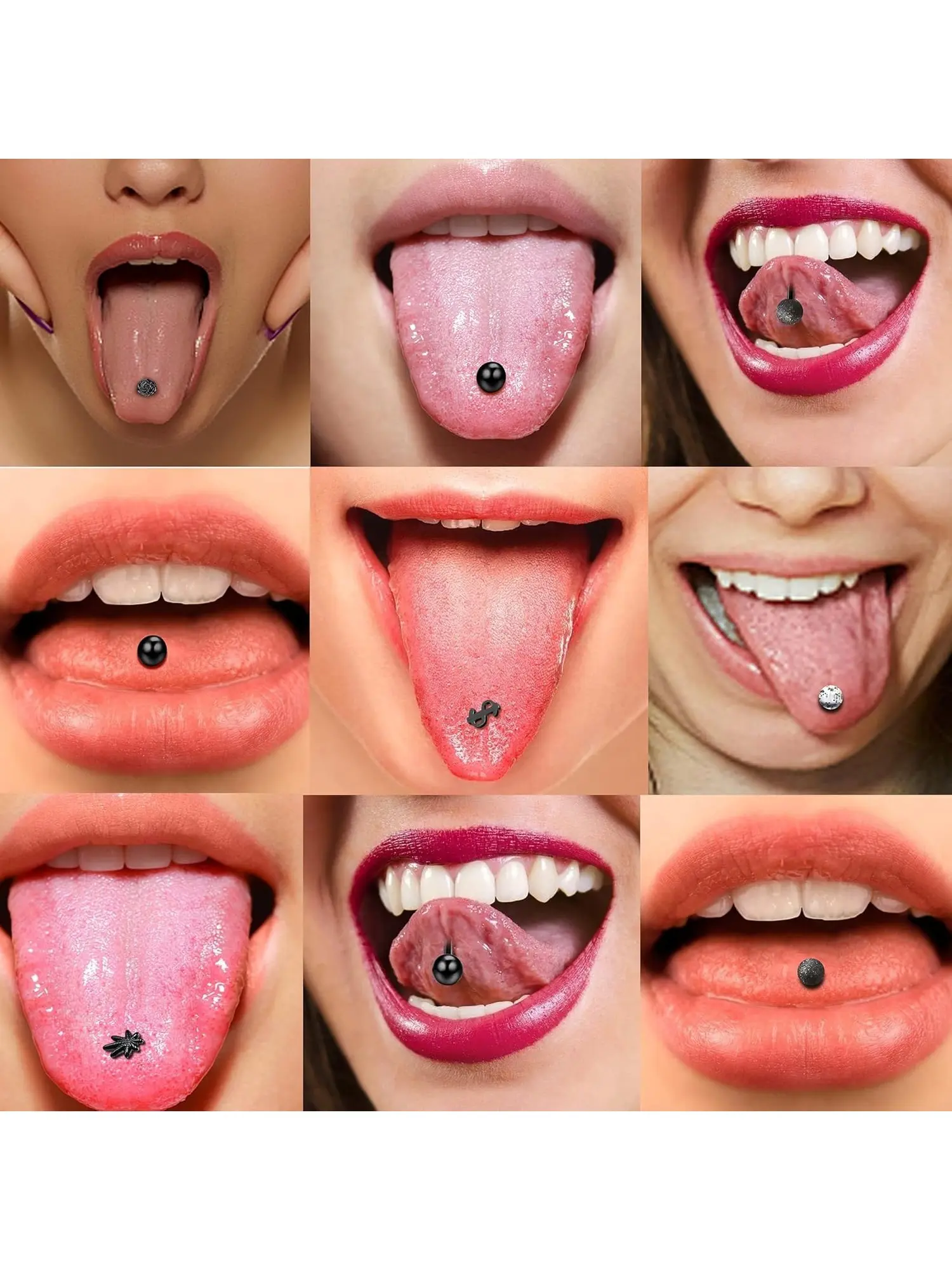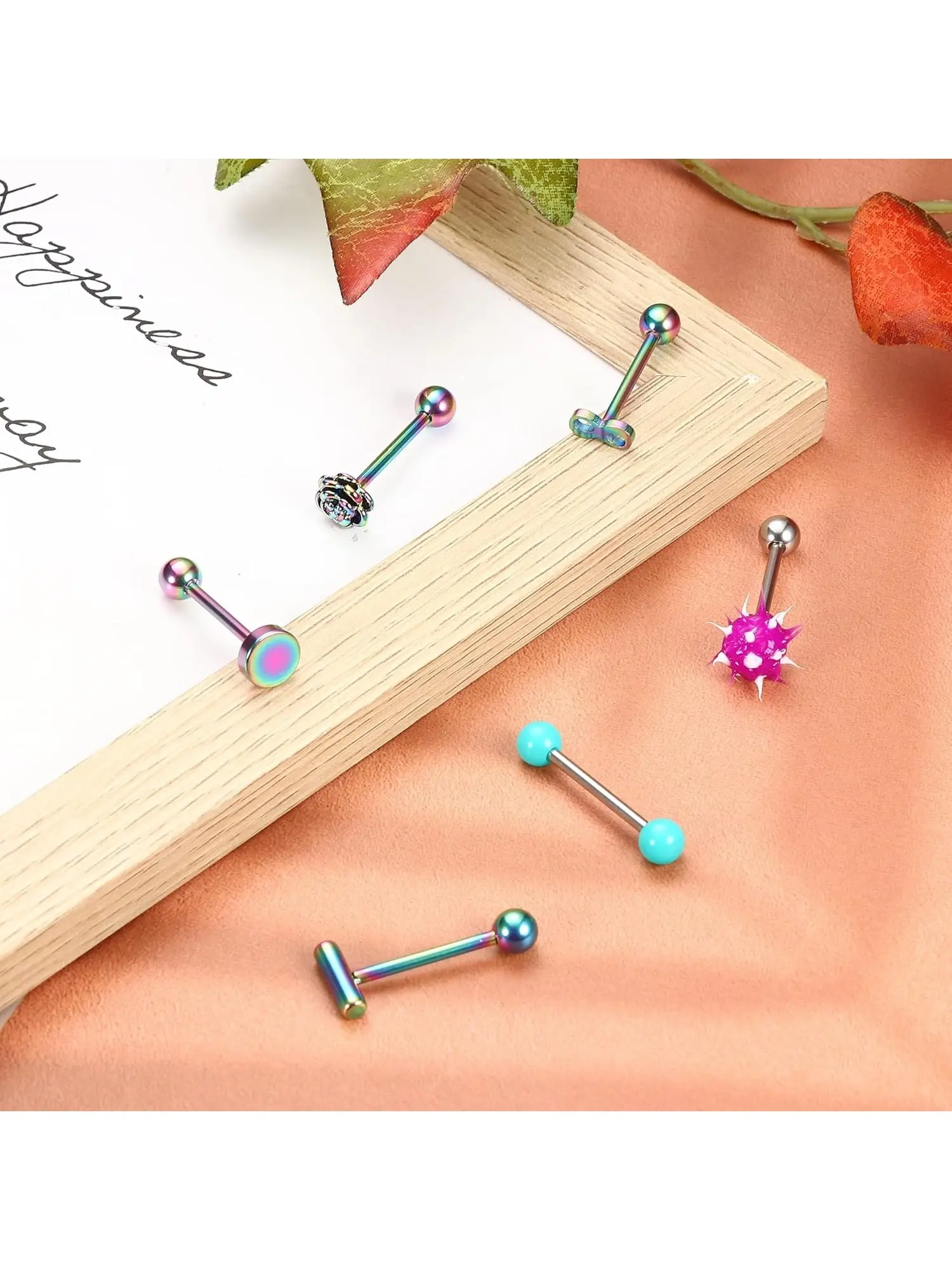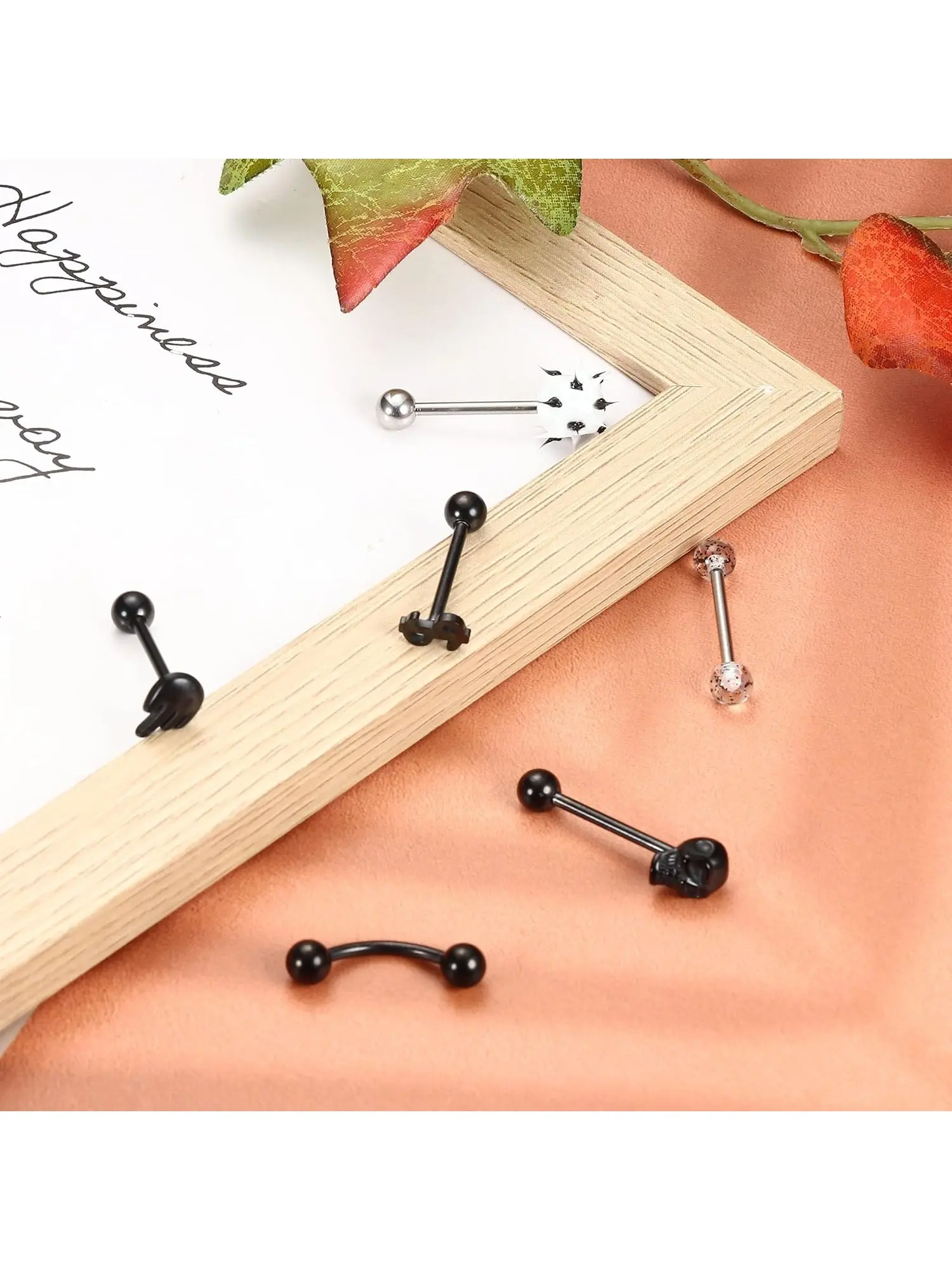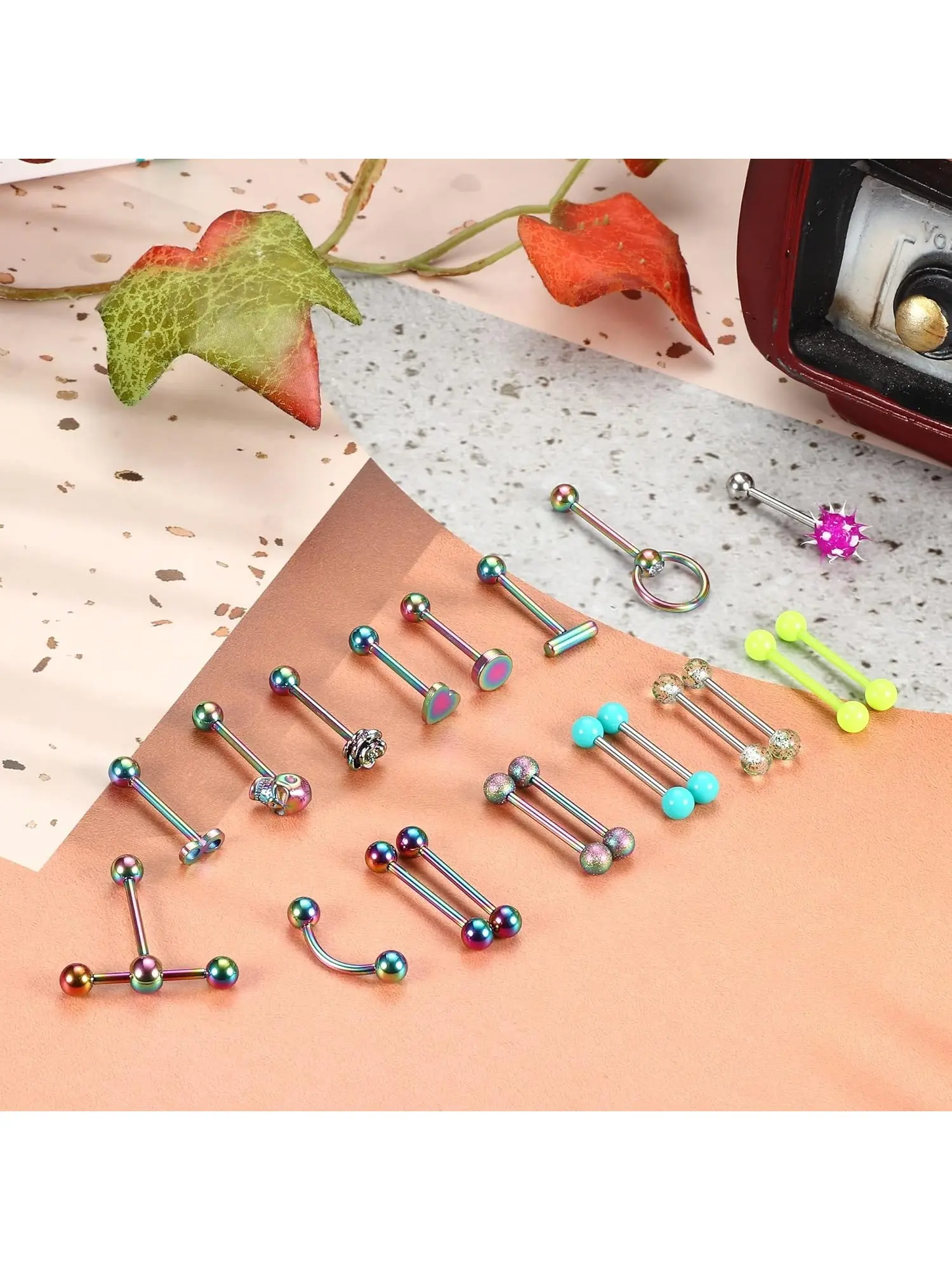 20Pcs 14G Tongue Rings for Women Men 316L Stainless Steel Skull Heart Tongue Piercing Jewelry