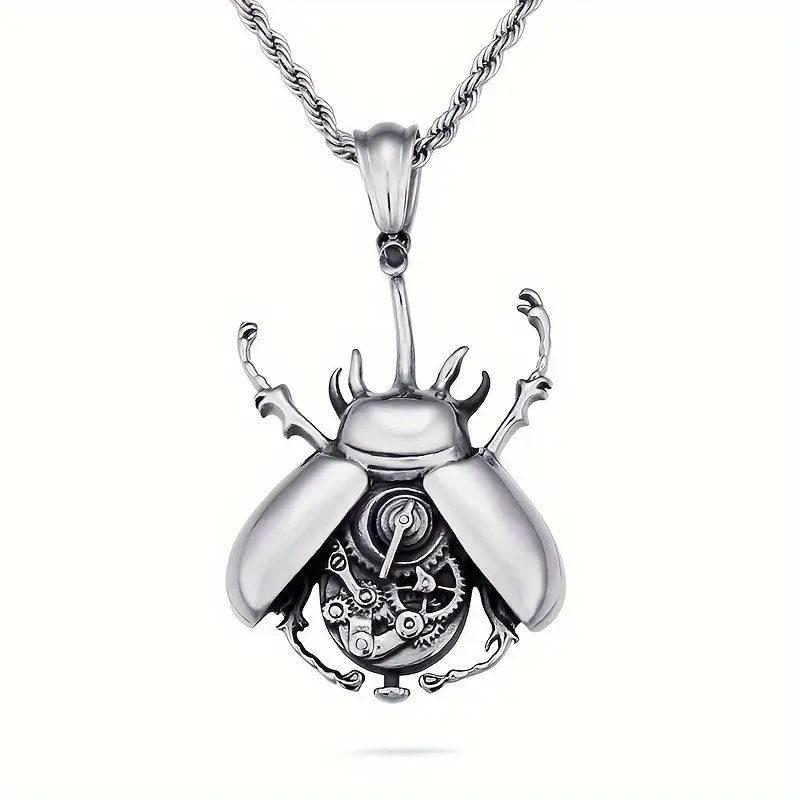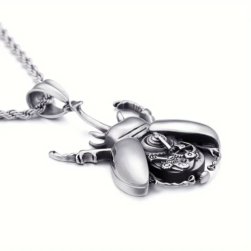 This men's beetle necklace isn’t just jewelry-it’s a bold declaration of individuality.Crafted from durable alloy using precision casting, the detailed beetle body features layered brass-finished gears that catch light with every movement.Each gear is sharply defined, each wing edge crisp and intentional-no mass-produced flatness here.