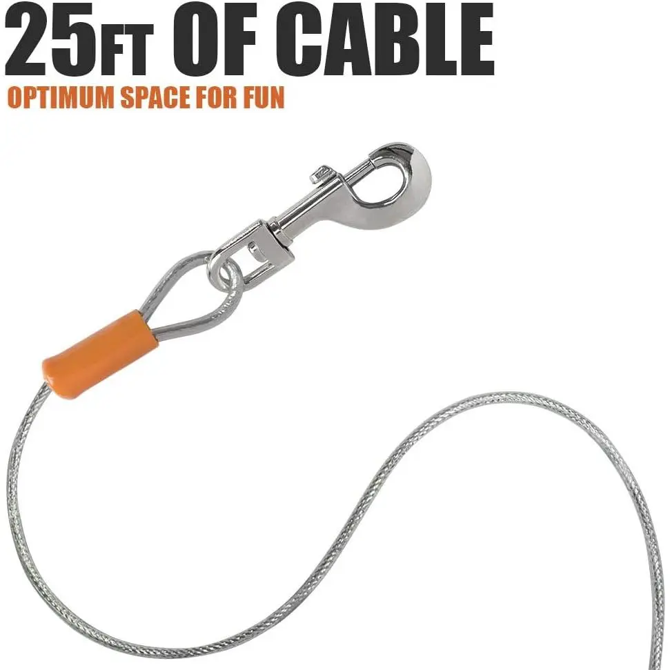 ·RUST-RESISTANT DESIGN FOR LONGEVITY: Our tie out cable for dogs comes with crimp and swivel clip covers, providing enhanced strength and protection against rust, ensuring a durable and reliable outdoor experience for your pet.