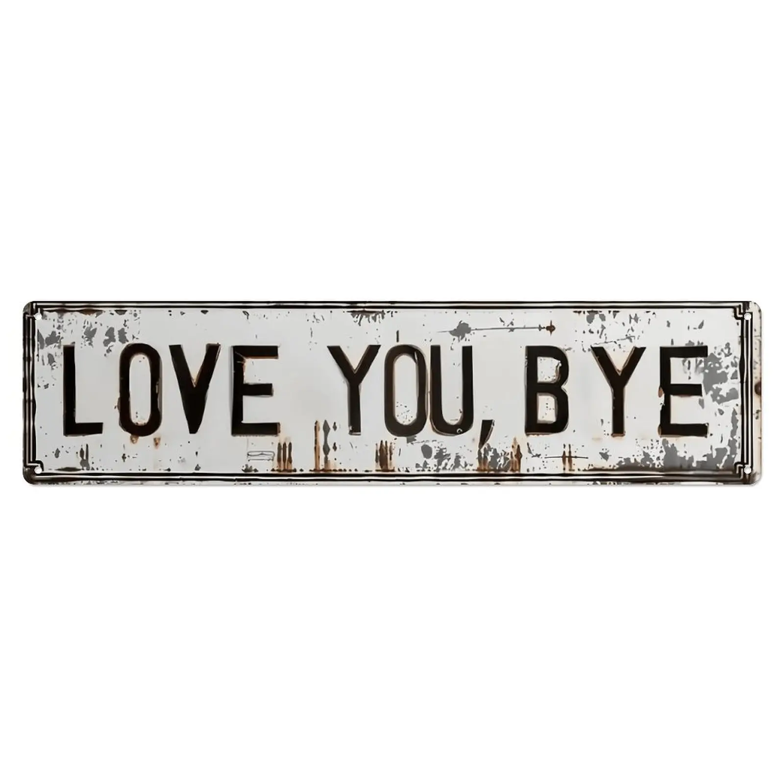 Distressed "Love You, Bye" License Plate Style Metal Sign, 4x16 Inch Vintage Rustic Aluminum Wall Art, Funny Front Door Porch Decor for Home Entryway