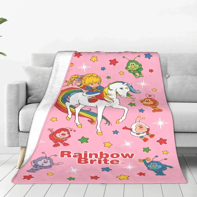 Rainbow Brite 80s Retro Blanket Ultra Soft Velvet Lightweight Thin Cozy Warm Throw