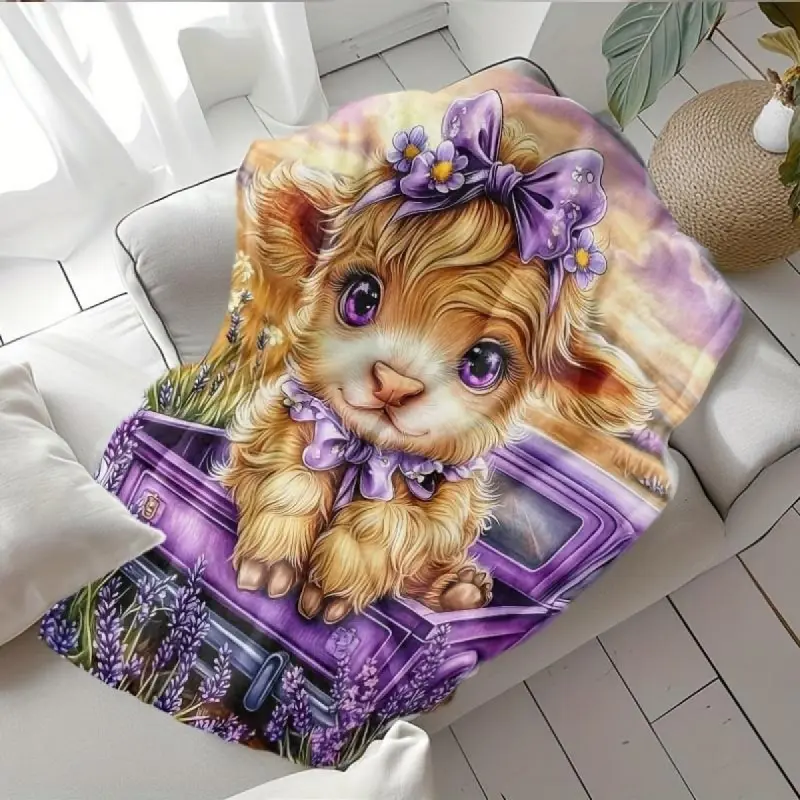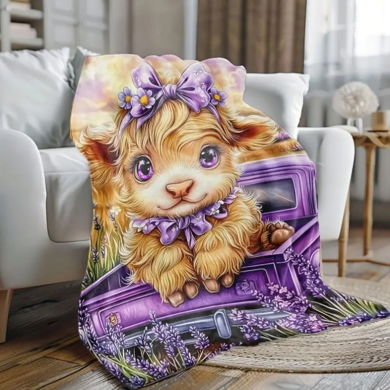 1pc Purple Highland Cow Truck Blanket Multifunctional Printed Throw - Cow Pattern Flannel, Soft and Stain Resistant, Suitable for All Seasons Perfect for Bed, Sofa, Office and Outdoor Use-280GSM