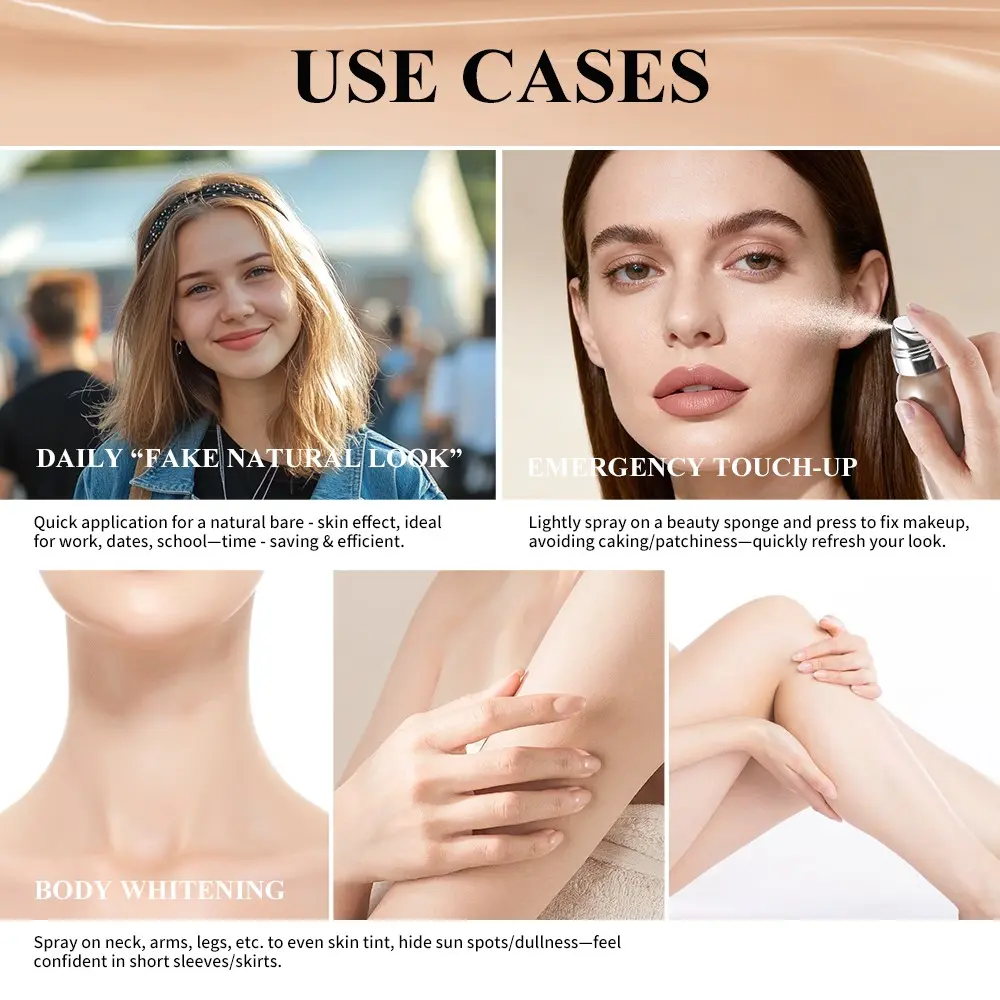 4-Color Air Spray Foundation, Matte Liquid Makeup, Long-Lasting Setting Spray, Concealer Spray, Waterproof Sweatproof Foundation