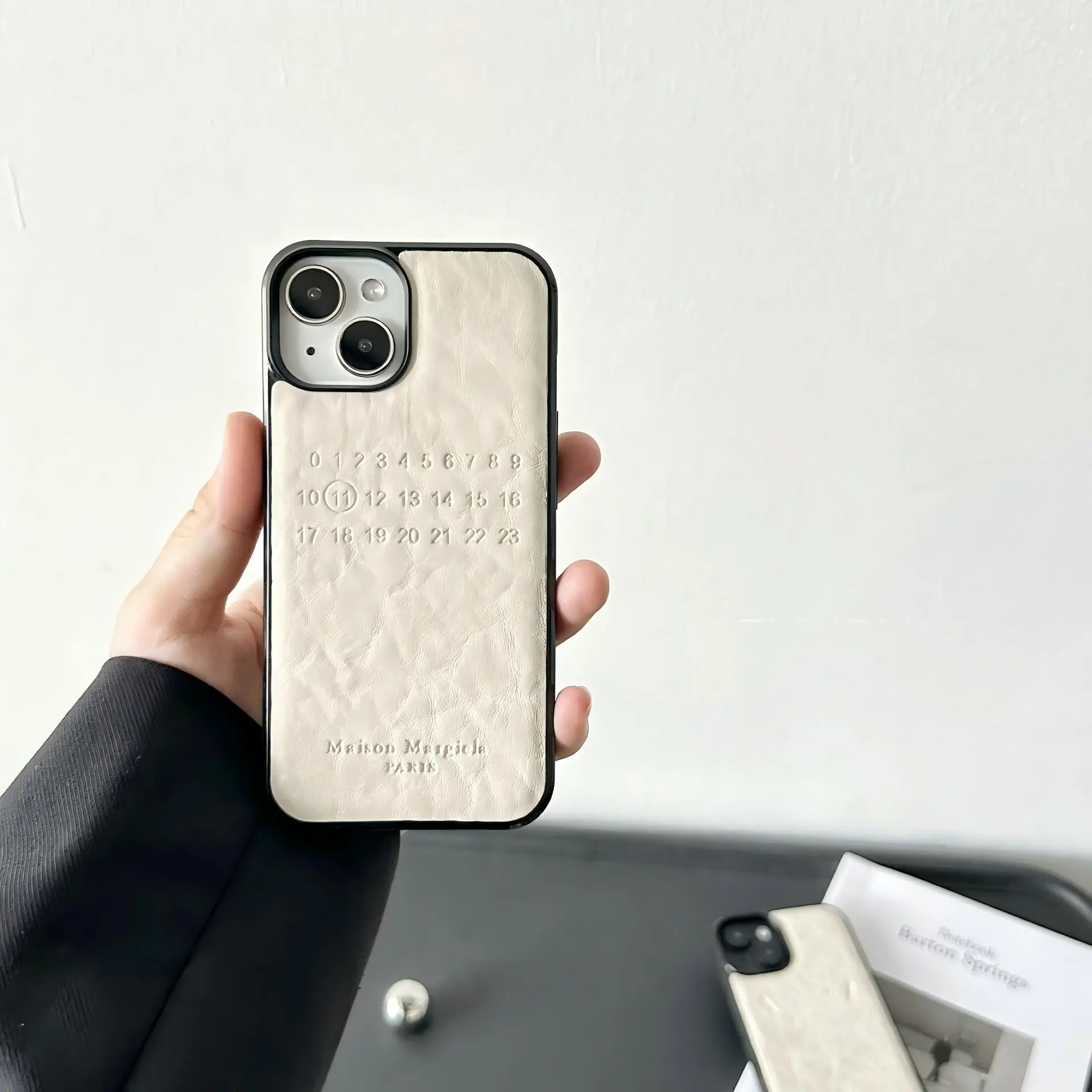 Case & Nova. Luxury minimalist leather phone case with number pattern for iPhone 17 Pro Max, 16, 15, 14, 13 — premium shockproof protective shell junk