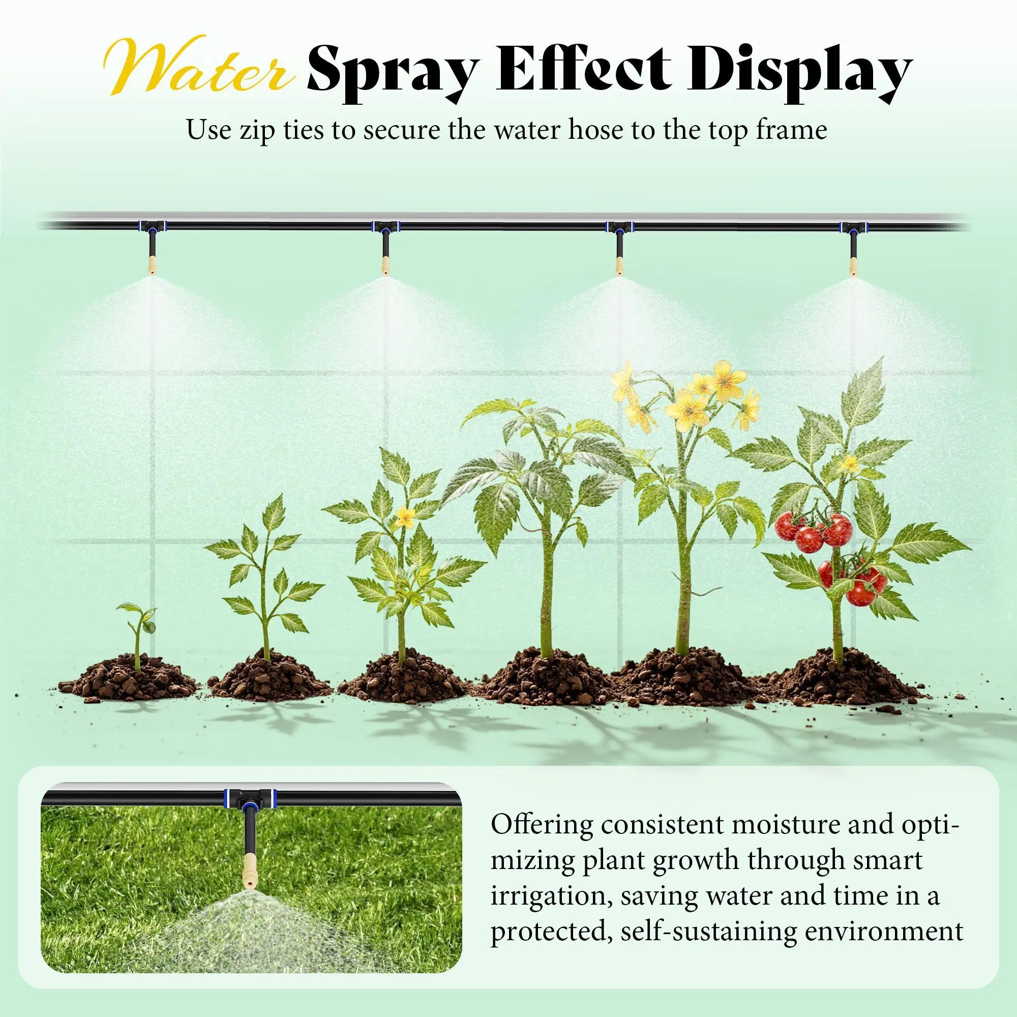 ·Watering System: Built-in adjustable misting nozzles provide consistent, gentle watering to keep soil evenly moist and support steady plant growth, making this outdoor greenhouse convenient and reliable for busy gardeners