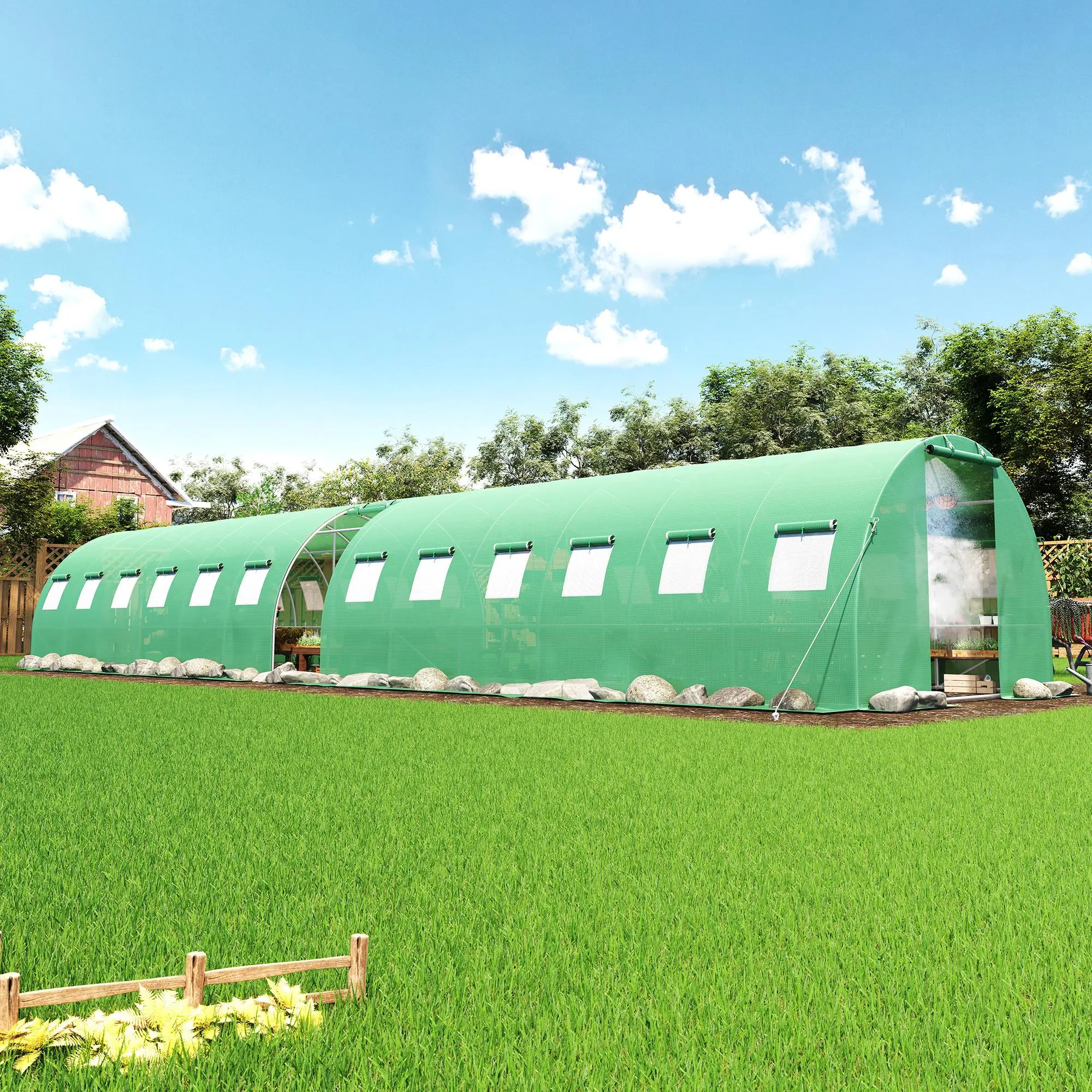 ·Spacious Walk-In Design: The 10×44FT space with a 6.1FT entry height provides roomy interior for family gardening, school use, or small farms. This large greenhouse lets several people work easily without crowding