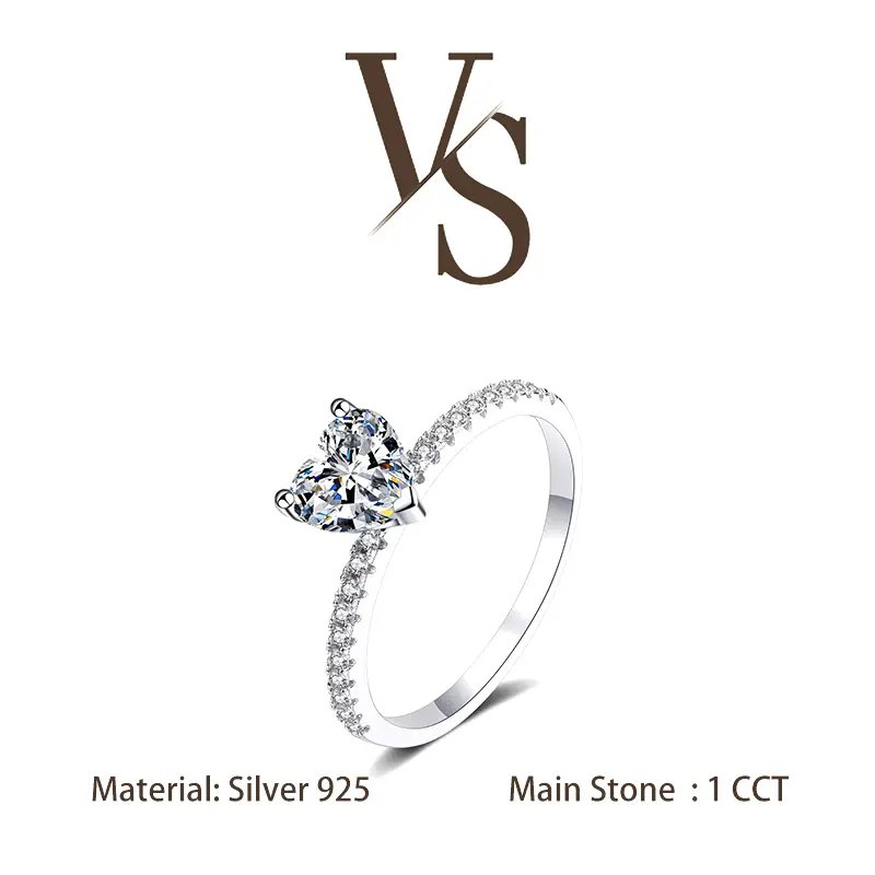 [Venus Jewelry] Synthetic Moissanite 1 CCT Heart Shape Dainty Design VVS 1 D Color Solid Silver 925 Solitare Ring