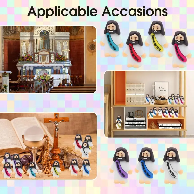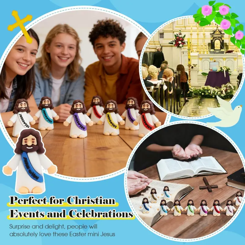 Exceptional durability: Our meticulously crafted 210-piece set of miniature Jesus figurines is of superior quality, made of silicone, and is durable, resistant to fading and deformation, ensuring they will remain a cherished part of your collection for a long time Ideal for Easter and Christmas: These little Jesus figures are perfect for enhancing the festive atmosphere of easter and christmas. Use them as unique easter egg fillers or as standalone decorations to add a meaningful touch to your holiday celebrations Generous Quantity: Receive a substantial 210-piece set of little jesus figures, each measuring 1. 57 x 1. 18 x 0. 59 inches / 4 x 3 x 1. 5 cm, providing you with ample figures for church parties, baptisms, and various religious events Versatile Religious Figures: Ideal for a variety of religious occasions, these tiny Jesus figures can be used as party favors, gift embellishments, or decorative accents, making them a versatile choice for any christian gathering Compact Size for Easy Storage: With their compact size, these little Jesus figures are easy to store and transport, allowing you to keep them handy for any event or simply to have on display as a reminder of faith and tradition