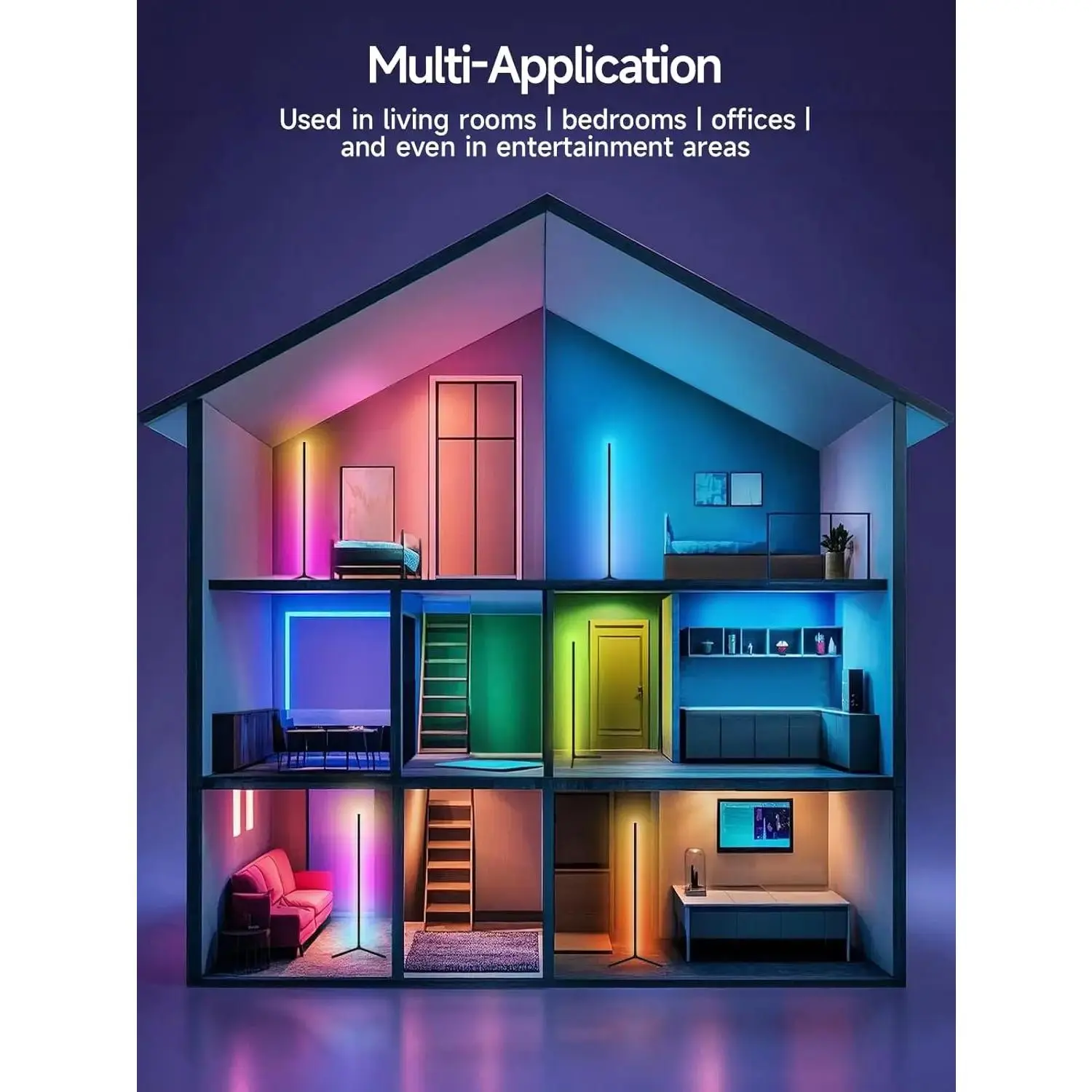 5. Corner Floor Lamp, RGB LED Corner Lamp with Music Sync, Smart App and Remote Control Color Changing Ambience Light, LED Lamp with 16 Million Colors for Bedroom, Living Room Gaming Room