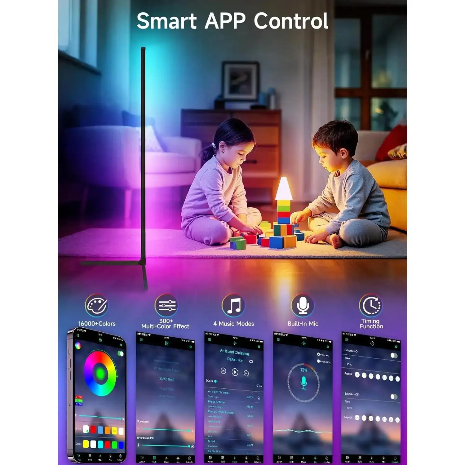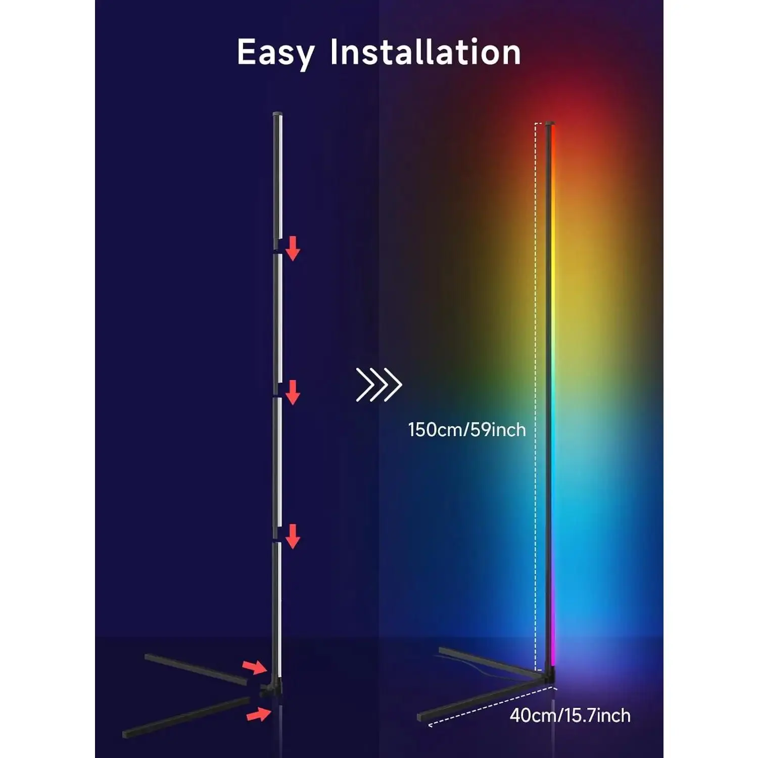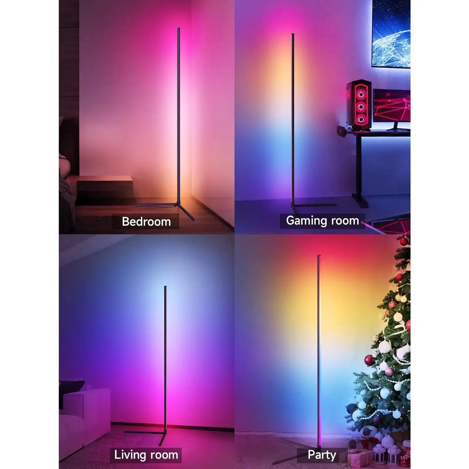 Corner Floor Lamp, RGB LED Corner Lamp with Music Sync, Smart App and Remote Control Color Changing Ambience Light, LED Lamp with 16 Million Colors for Bedroom, Living Room Gaming Room