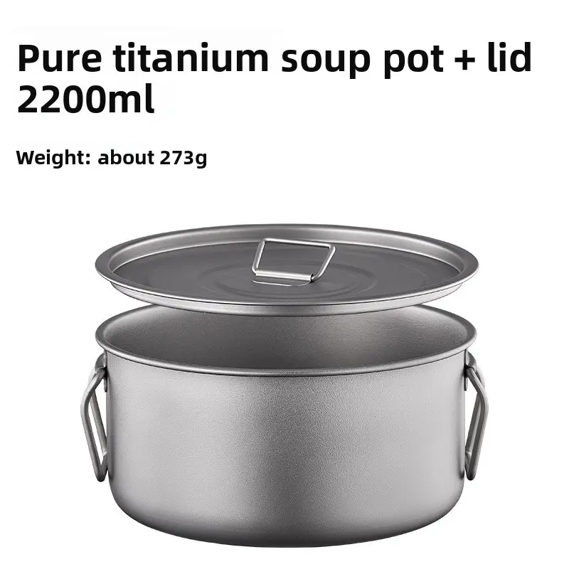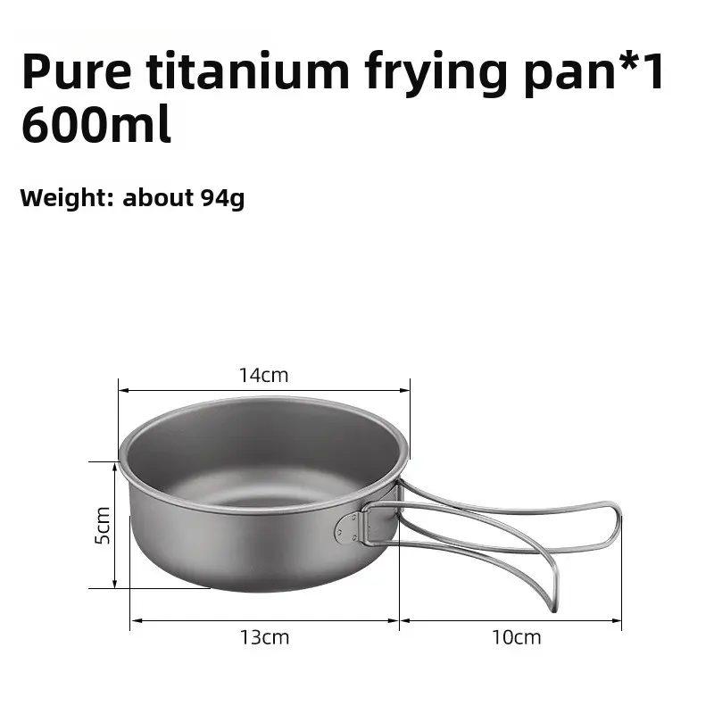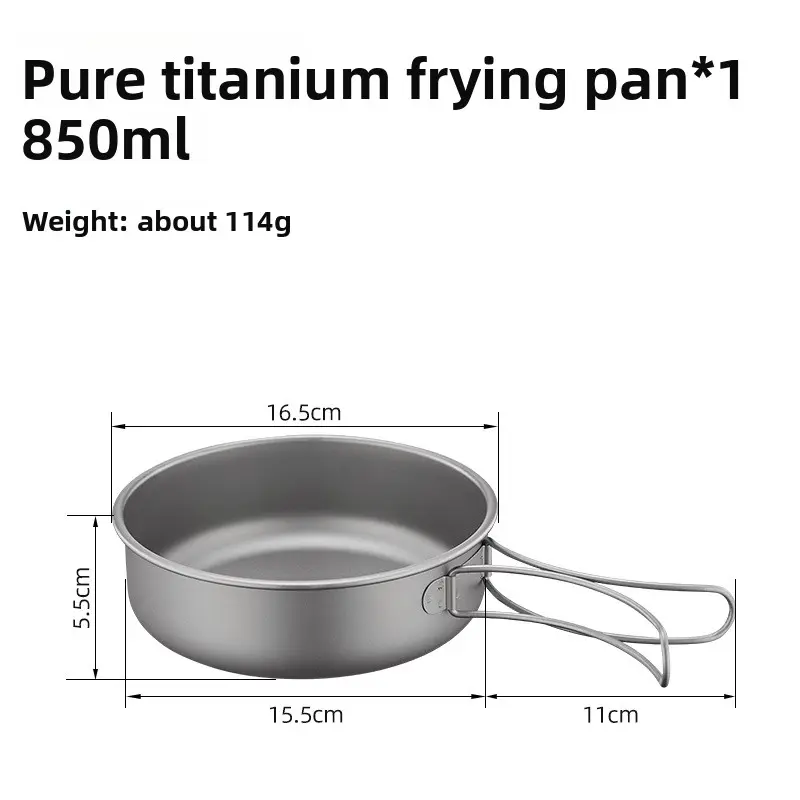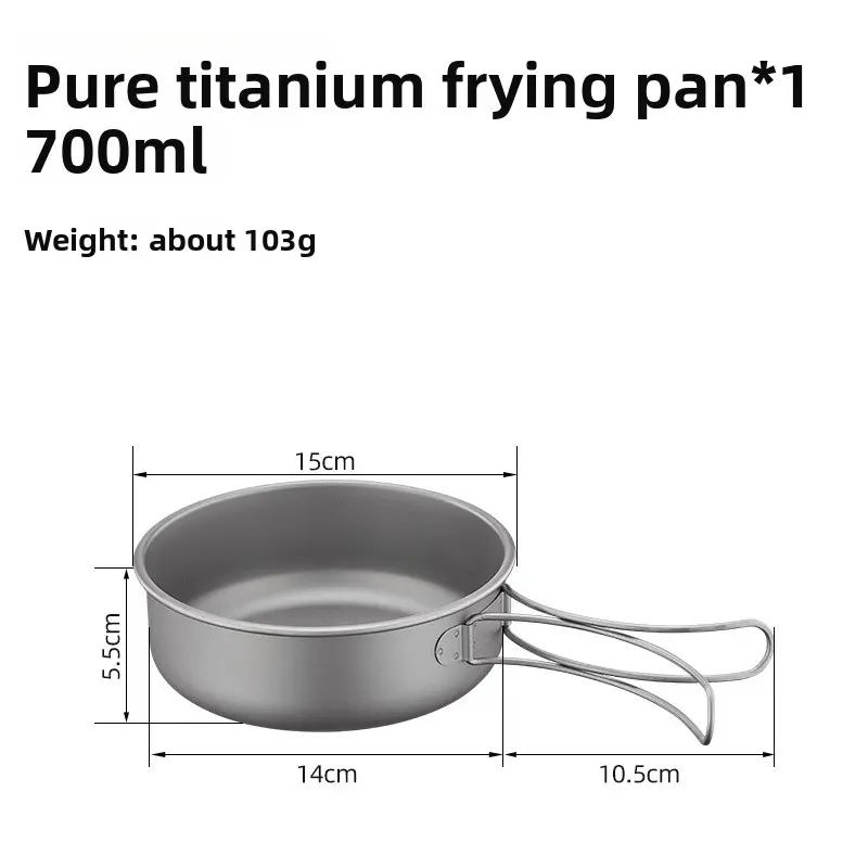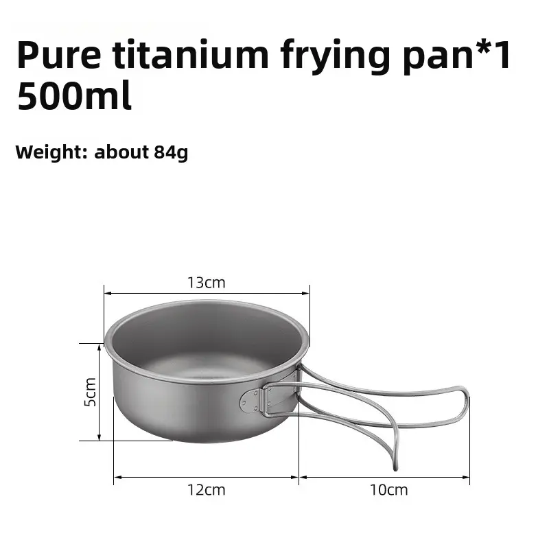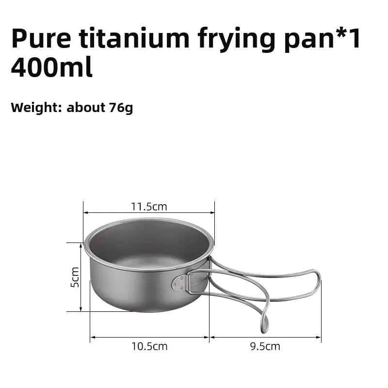 Pure Titanium Camping Cookware Set Foldable Lightweight Outdoor Pot Pan for Backpacking Hiking Picnic Cooking with Soup Frying Pot