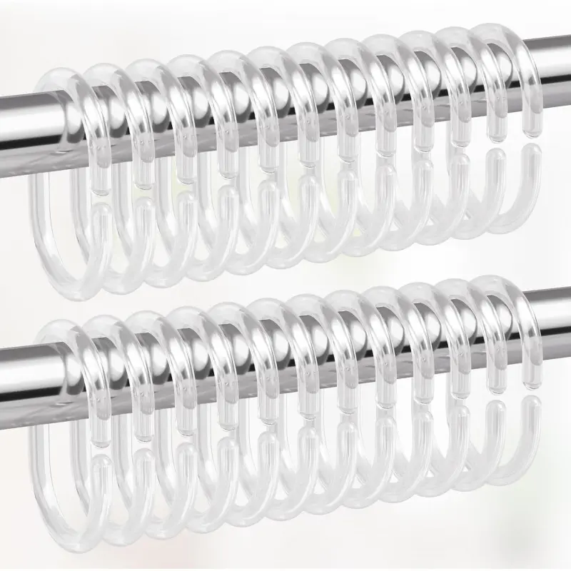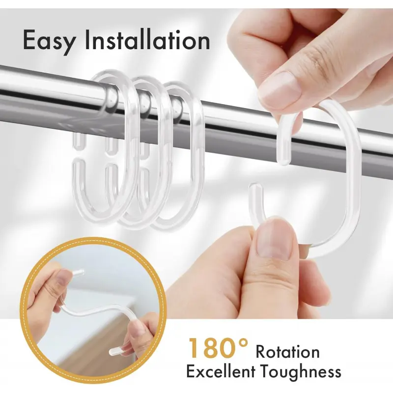 Plastic Shower Curtain Rings, Shower Curtain Hooks, 24 Pcs C Shaped Shower Hooks for Shower Curtain, Clear Shower Curtain Hooks for Bathroom