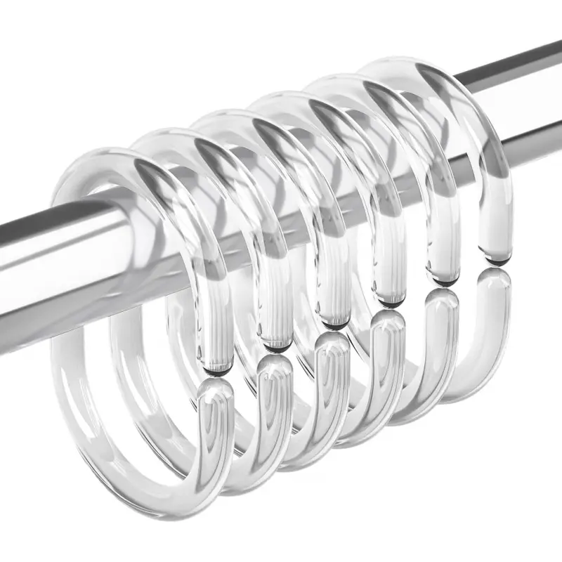 ·Why Choose Plastic Shower Curtain Hooks? These simple plastic curtain rod rings solves all the problems that you get with metal rings. They don't rust and they pull smoothly without catching. They are simple to put on and off but at the same time they never come undone from use.