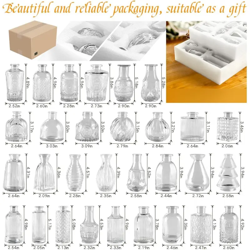 Glass Bud Vases in Bulk Set of 30 Pcs,Small Glass Vases for Flowers as Wedding Centerpieces for Tables,Clear Flower Vases Suitble for Wedding Decorations,Christmas Home Decor (Clear, 30